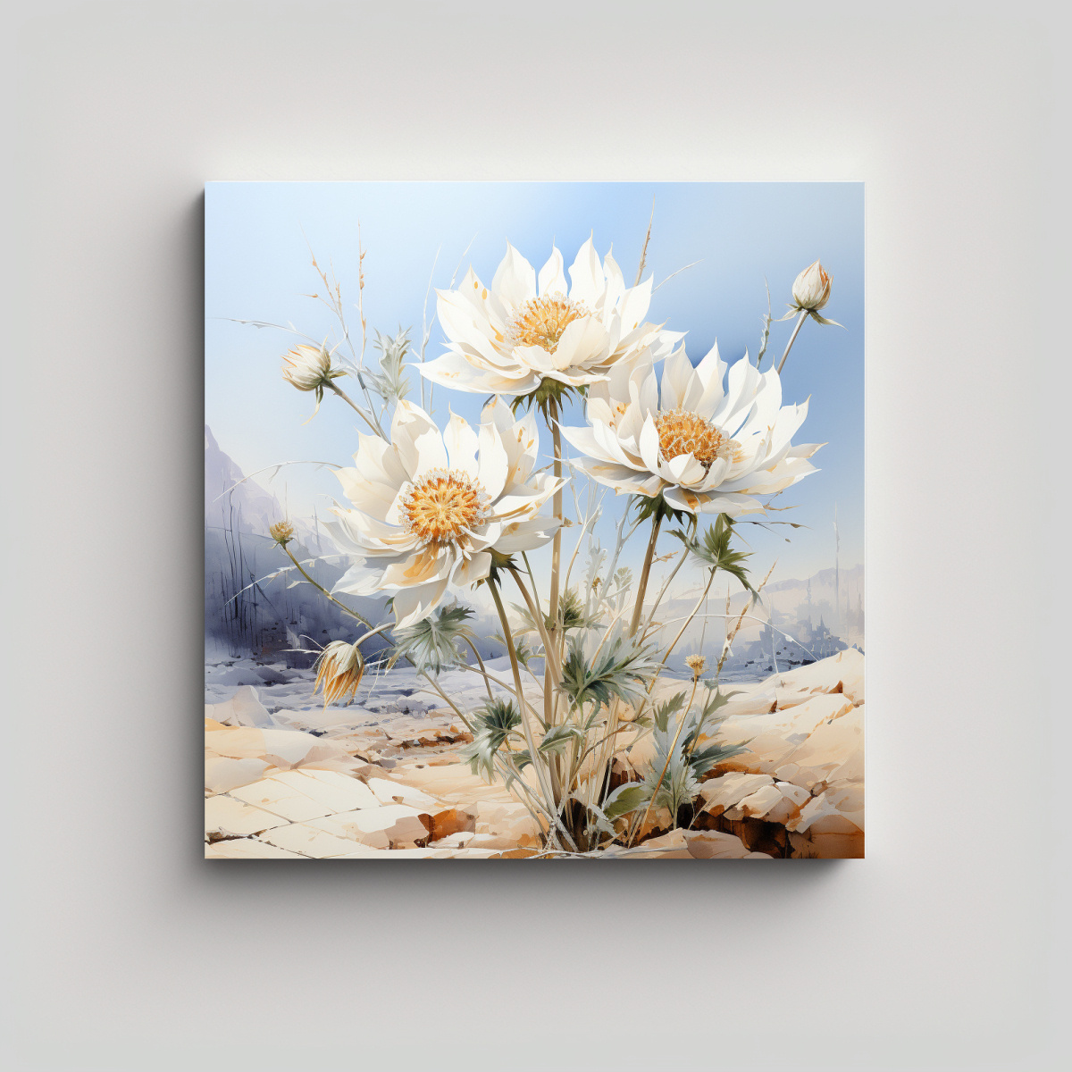 DecoCuadros ofrece cuadros decorativos impresos en tela con bastidores de madera Cuadro abstracto de flores en bastidor con colores blanco y girasoles de Jerusalén Envío gratis en Santiago y envíos rápidos a regiones