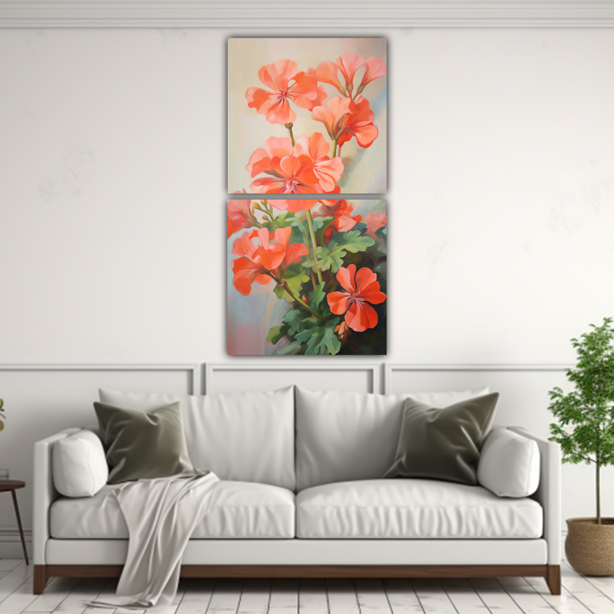 Este cuadro abstracto de flores geranio línea fina en lienzo se verá espectacular en el salón de tu casa Colócalo sobre el sofá para crear un punto focal en la habitación Combínalo con cojines en tonos coral y gris para lograr una armonía cromática ¡No esperes más y dale un toque de estilo a tu hogar con este hermoso cuadro de DecoCuadros!