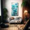 Cuadro Abstracto De Flores Turquesa En Lienzo Estilo Decorativo