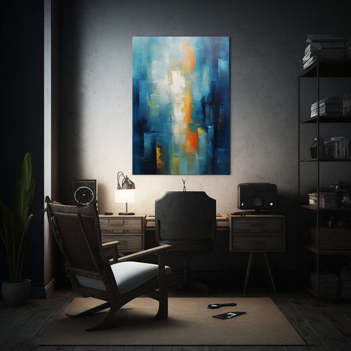 Este cuadro es ideal para decorar tu sala de estar Puedes colocarlo sobre una pared de color blanco o gris claro para resaltar los tonos azules, plateados y turquesas del cuadro Combínalo con cojines y cortinas en colores gris, menta y coral para crear un ambiente armonioso y moderno