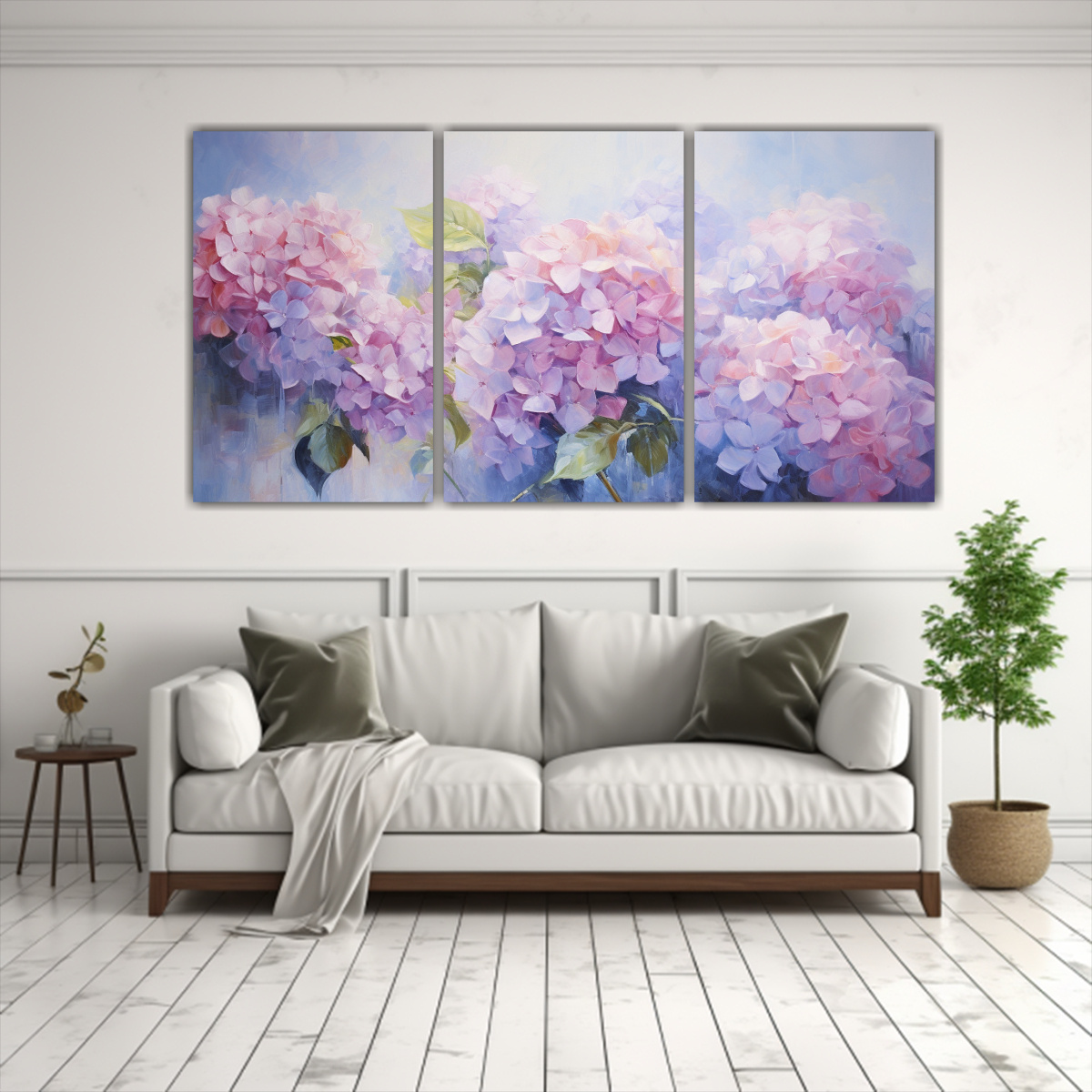 Cuadro Abstracto De Hydrangeas: Adorno Moderno De Tres Lienzos Pintura Al óleo Detallada De Alta Calidad