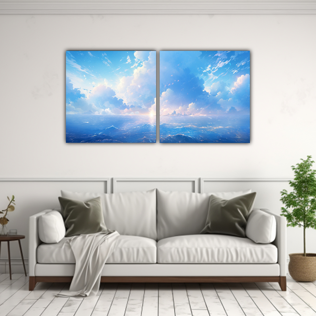 DecoCuadros tiene para ti este hermoso diptico abstracto que representa un cielo y mar arcoíris en una gama de colores blanco, turquesa, beige, verde azulado, plateado, aguamarina, lila y gris Renueva tus interiores con la mejor calidad y diseños exclusivos a precios accesibles Aprovecha nuestras rápidas entregas gratuitas en Santiago y envíos express a regiones