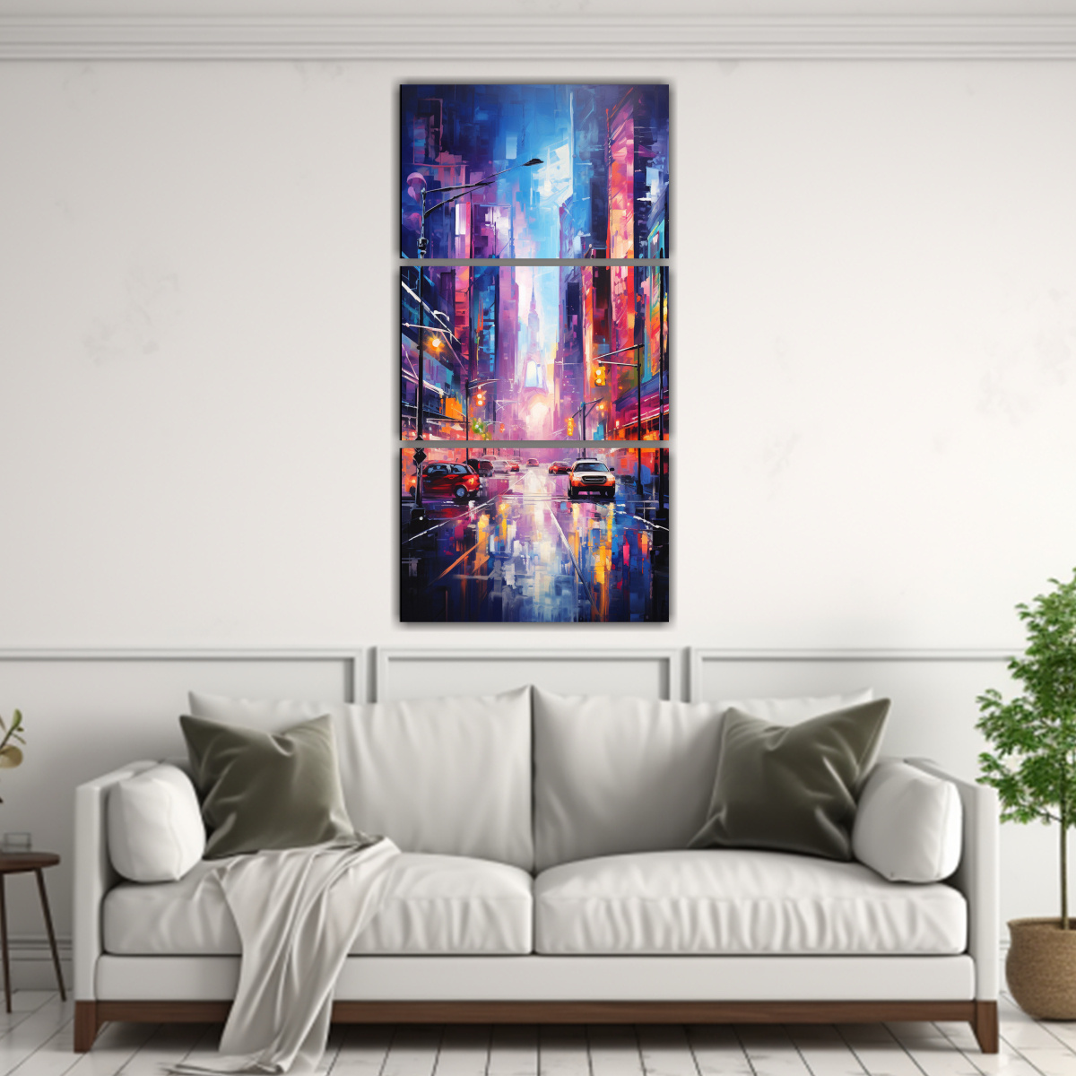 Para complementar la decoración con este cuadro abstracto de Nueva York, te recomiendo colocarlo en un espacio amplio y con iluminación natural para resaltar los colores vibrantes Combínalo con muebles en tonos neutros para crear un contraste elegante y moderno Este cuadro será el centro de atención en salas de estar, espacios de trabajo o dormitorios contemporáneos