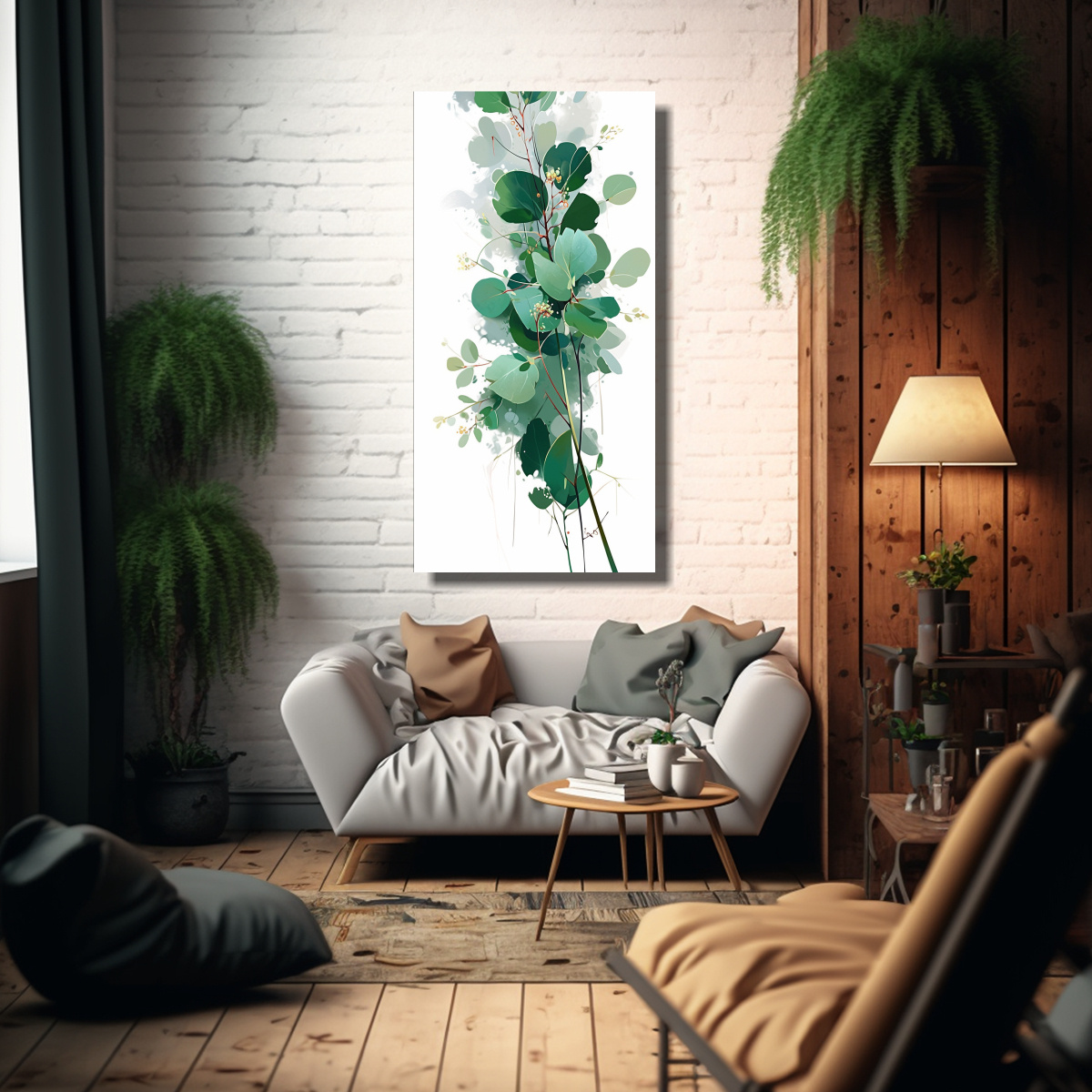 Decora tu hogar con elegancia y estilo con el Cuadro Abstracto de Lienzo con Árbol de Eucalipto en Tonalidades Verdes Envío rápido y gratuito en Santiago