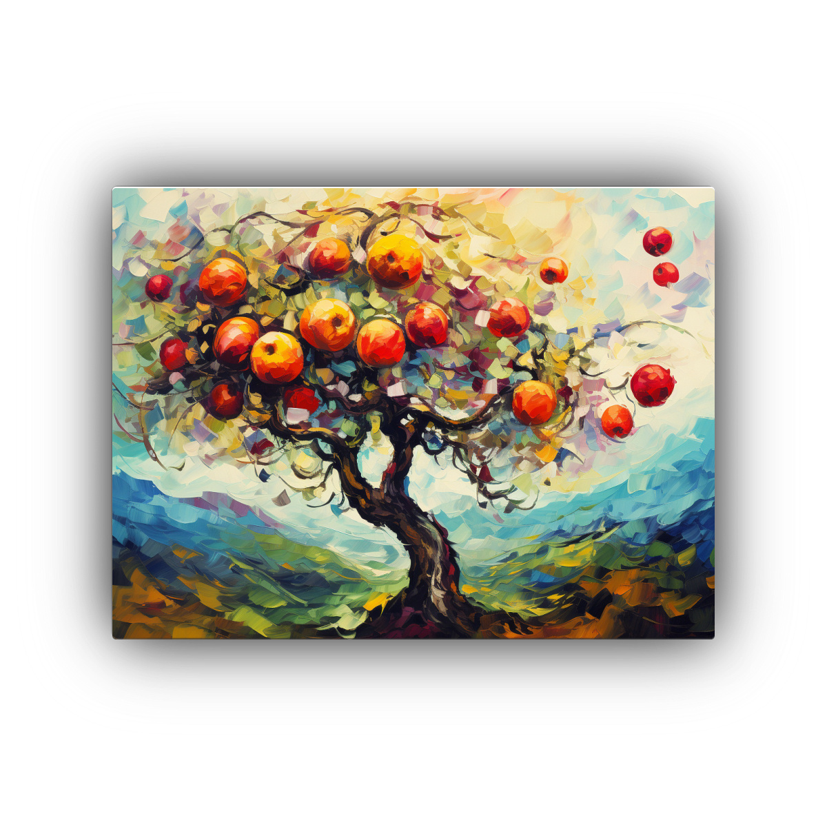 Lienzo patron intenso para cocina con diseño de manzana en estilo Estilo óleo detallado Descubre los cuadros decorativos de alta calidad de DecoCuadros, con entregas rápidas y gratuitas en Santiago Envíos express a regiones