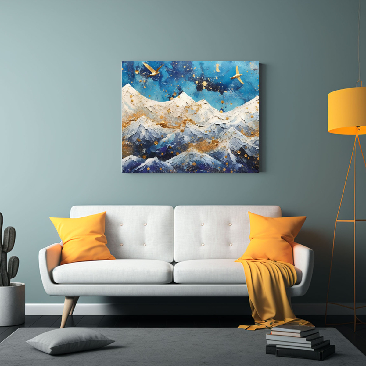 Cuadro Abstracto De Montañas Con Aves En Vuelo: Lienzo Moderno