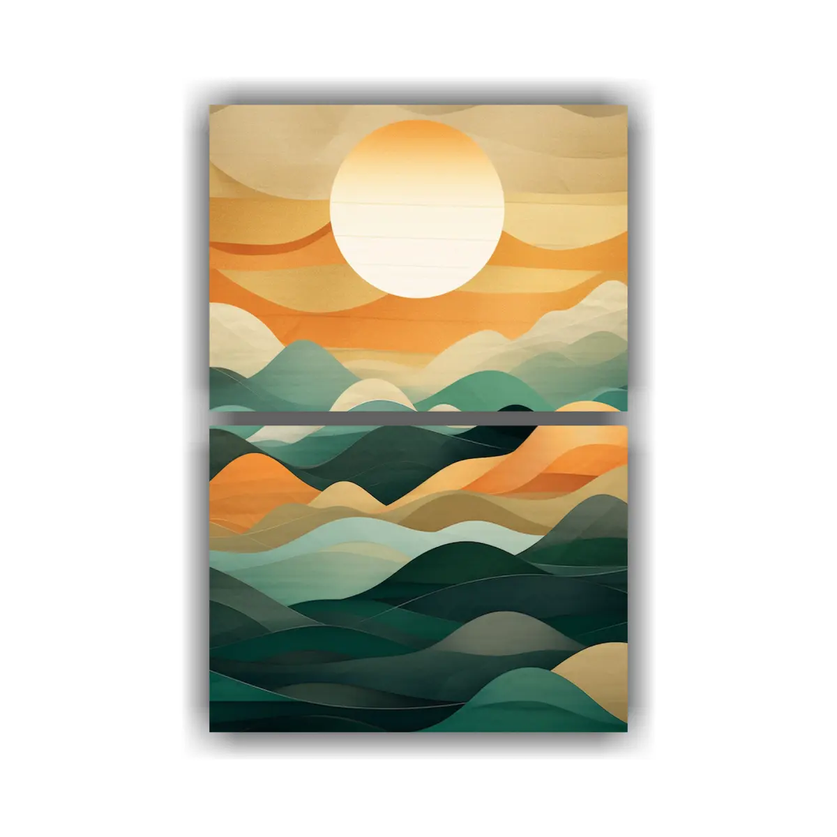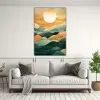 Coloca este cuadro abstracto de montañas y océano en tu sala de estar para crear un ambiente relajante y lleno de vida Combínalo con muebles en tonos neutros como beige y gris para resaltar los colores vibrantes del cuadro ¡Agrega cojines en tonos coral y amarillo claro para completar la decoración y crear un espacio acogedor!