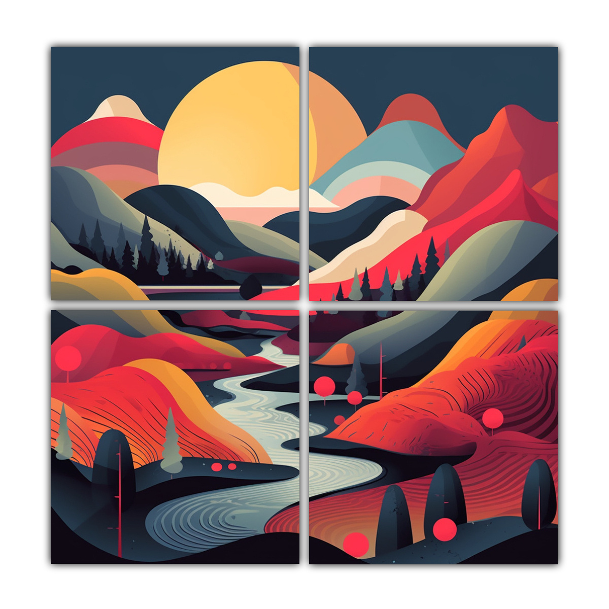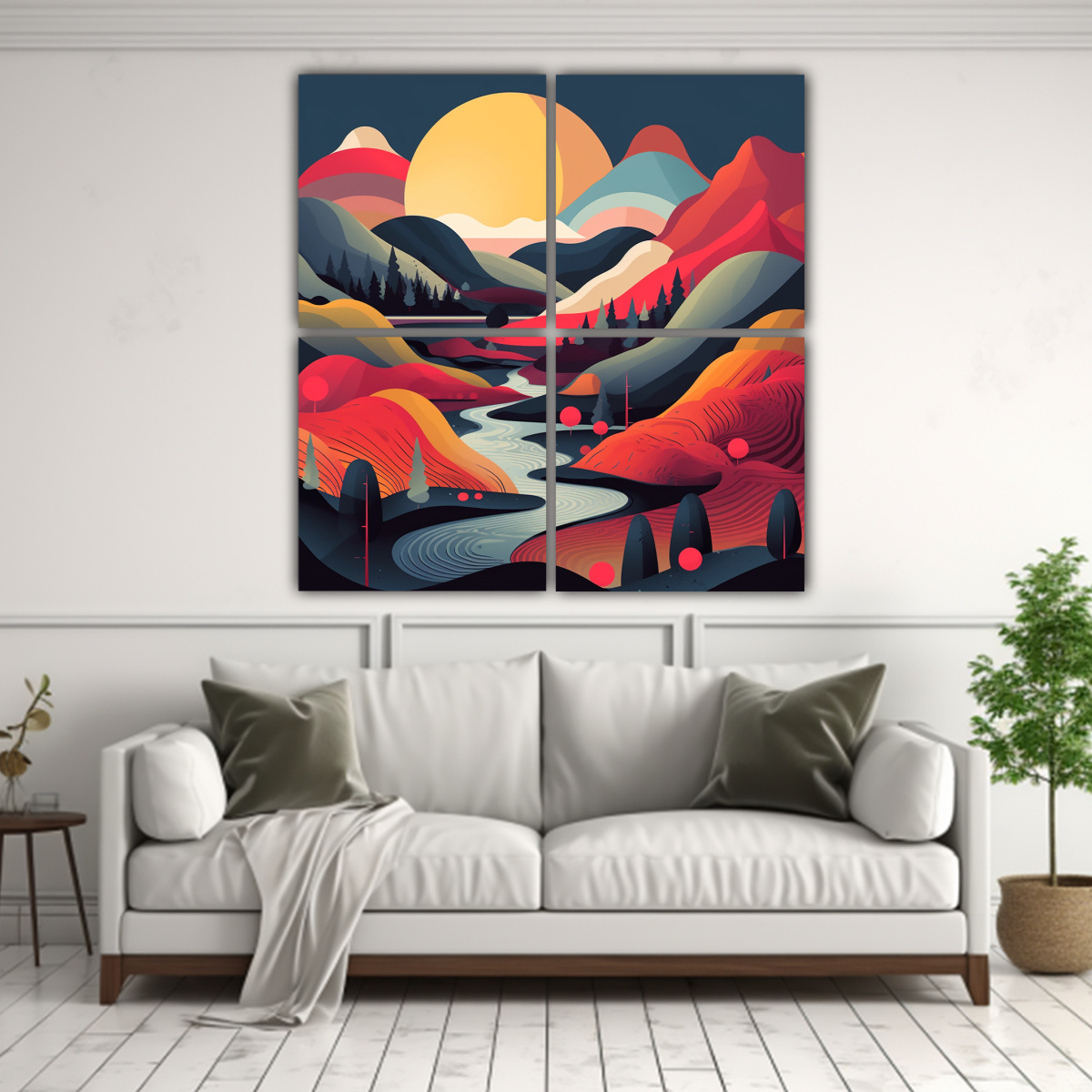 Cuadro Abstracto De Paisaje Cuatro Artes Con Dimensiones De Imagen