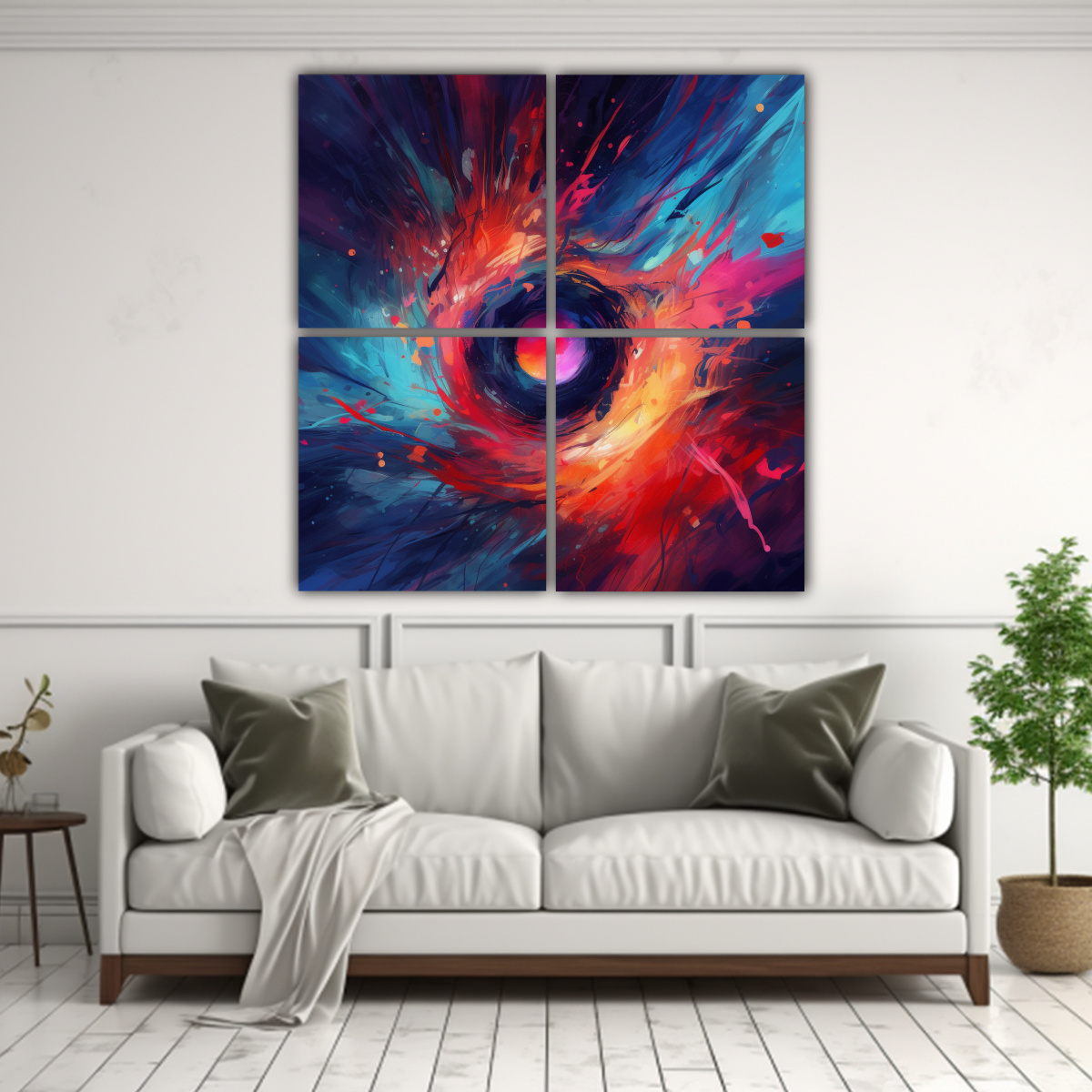 Decora con estilo y originalidad con el cuadro abstracto de pared con foco en el centro y fondo de neón de DecoCuadros Impreso en tela de alta calidad y con bastidores de madera, este cuadro es perfecto para cualquier ambiente Envío rápido y gratis en Santiago, y envíos express a regiones