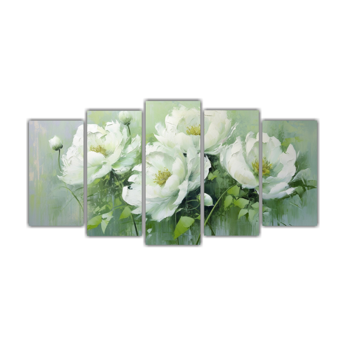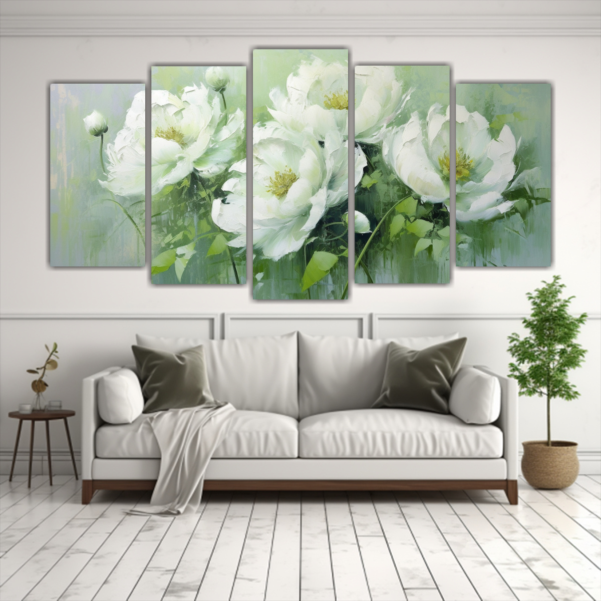 Cuadro Abstracto De Peonías Verdes: Vitalidad Y Abstracción