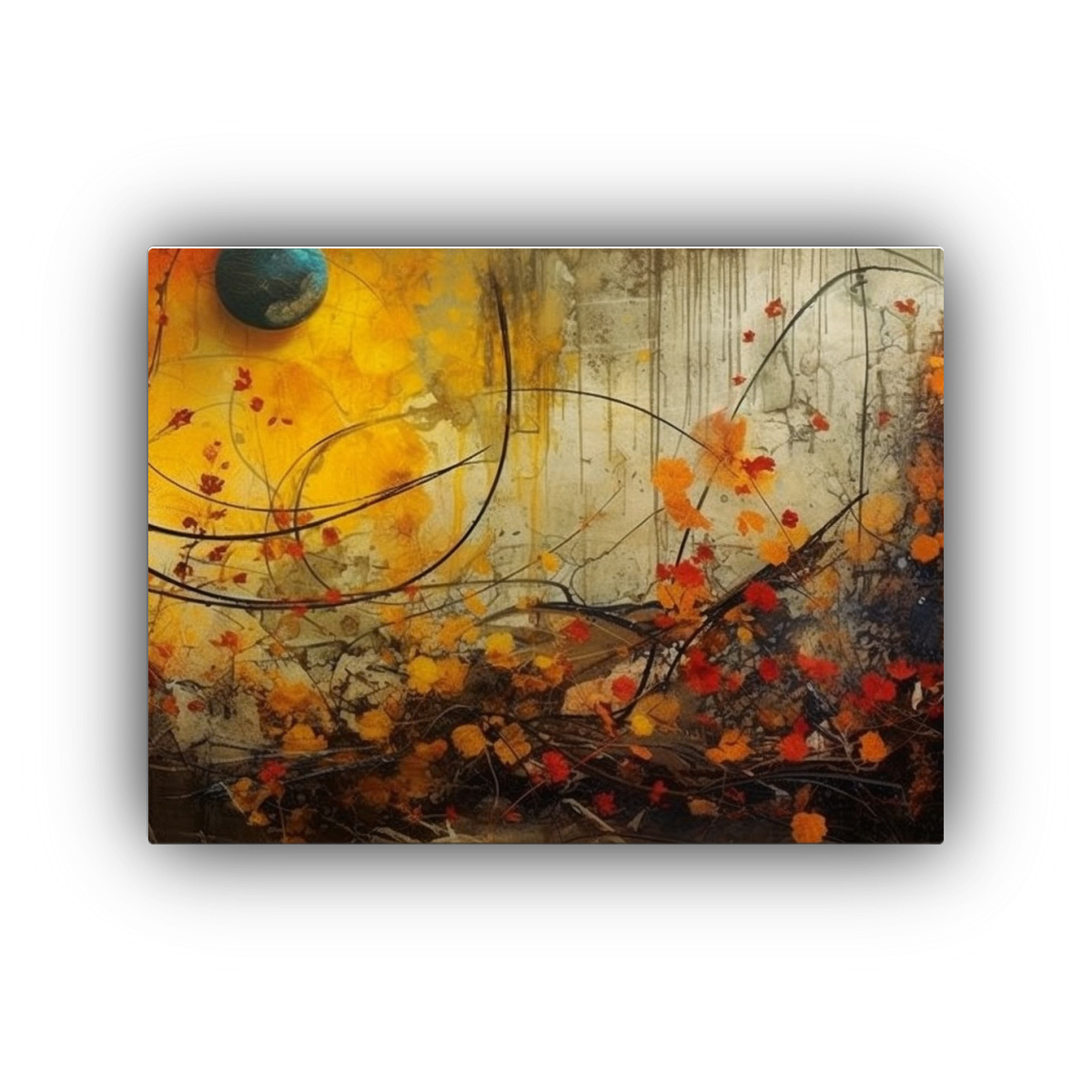 Para realzar la belleza del cuadro abstracto de tema otoñal, te recomendamos colocarlo en una pared de color neutro, como blanco o gris claro, para que los colores impactantes resalten y se conviertan en el punto focal de la habitación Combínalo con muebles de líneas sencillas y accesorios en tonos tierra para lograr una decoración armoniosa y moderna