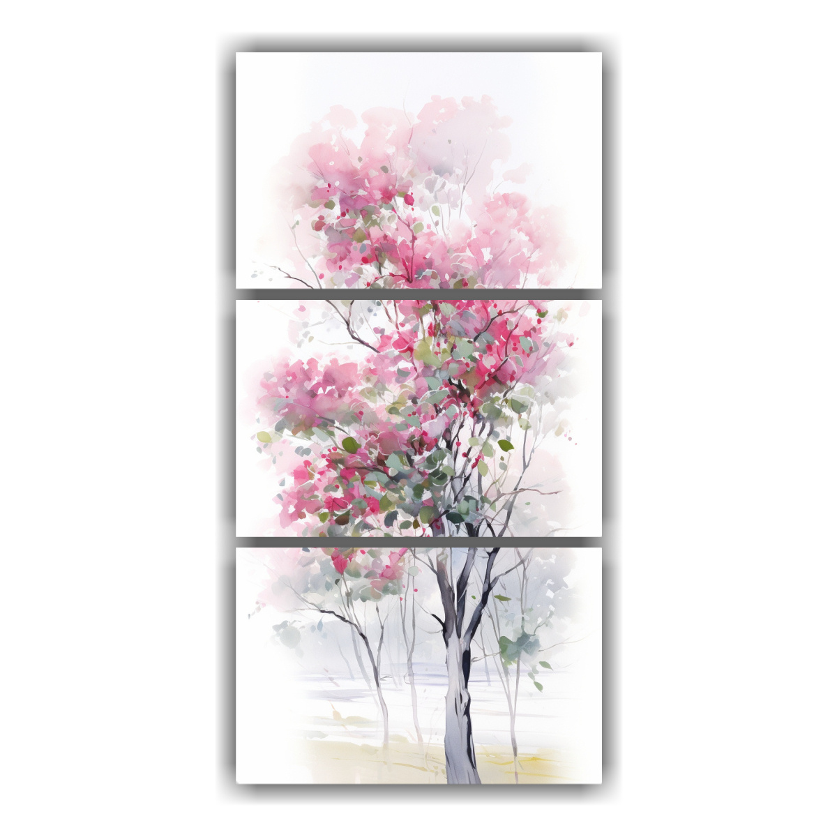 Cuadro Abstracto De Tres Lienzos Con Reflejo De Un Árbol De Eucalipto En Colores Blanco Y Rosa