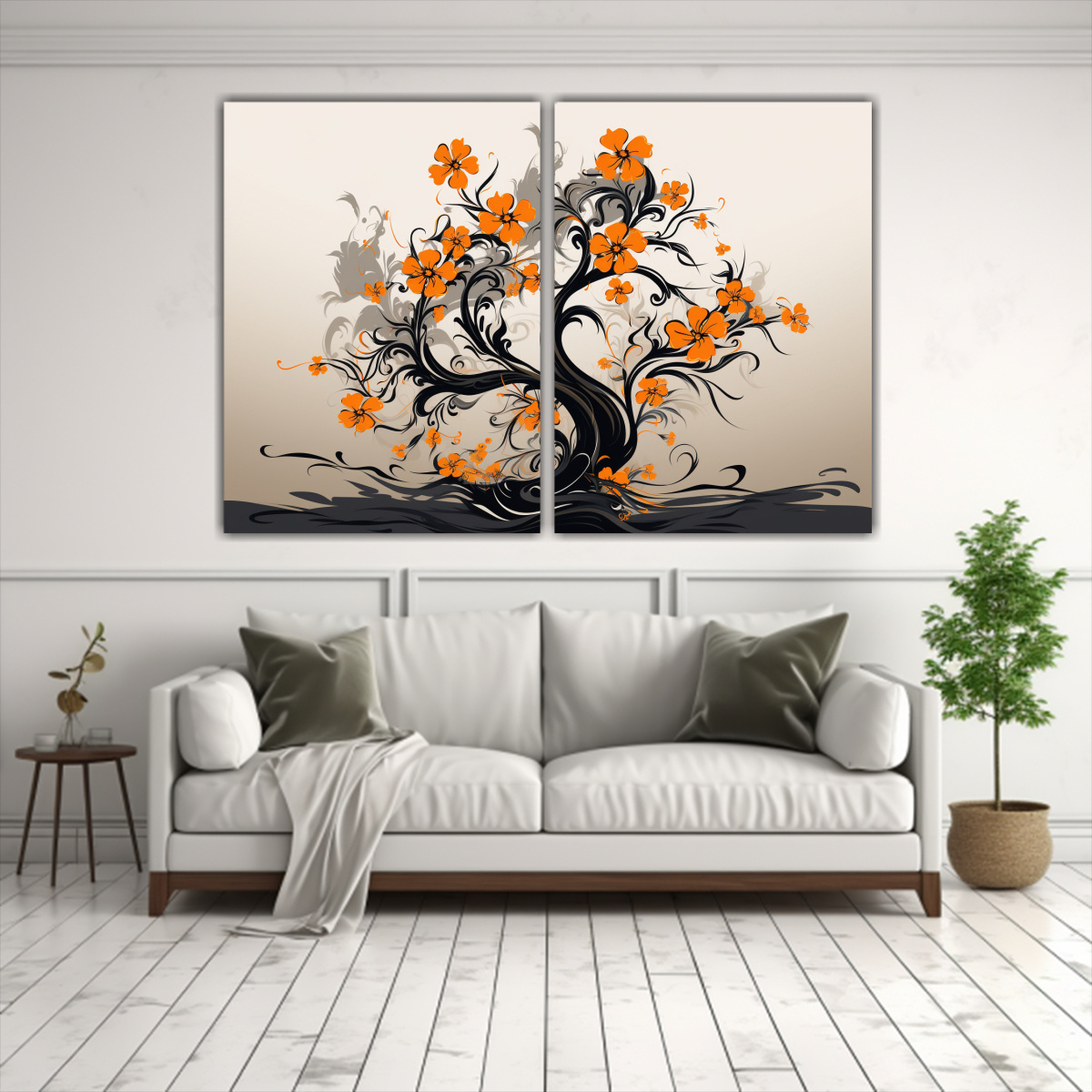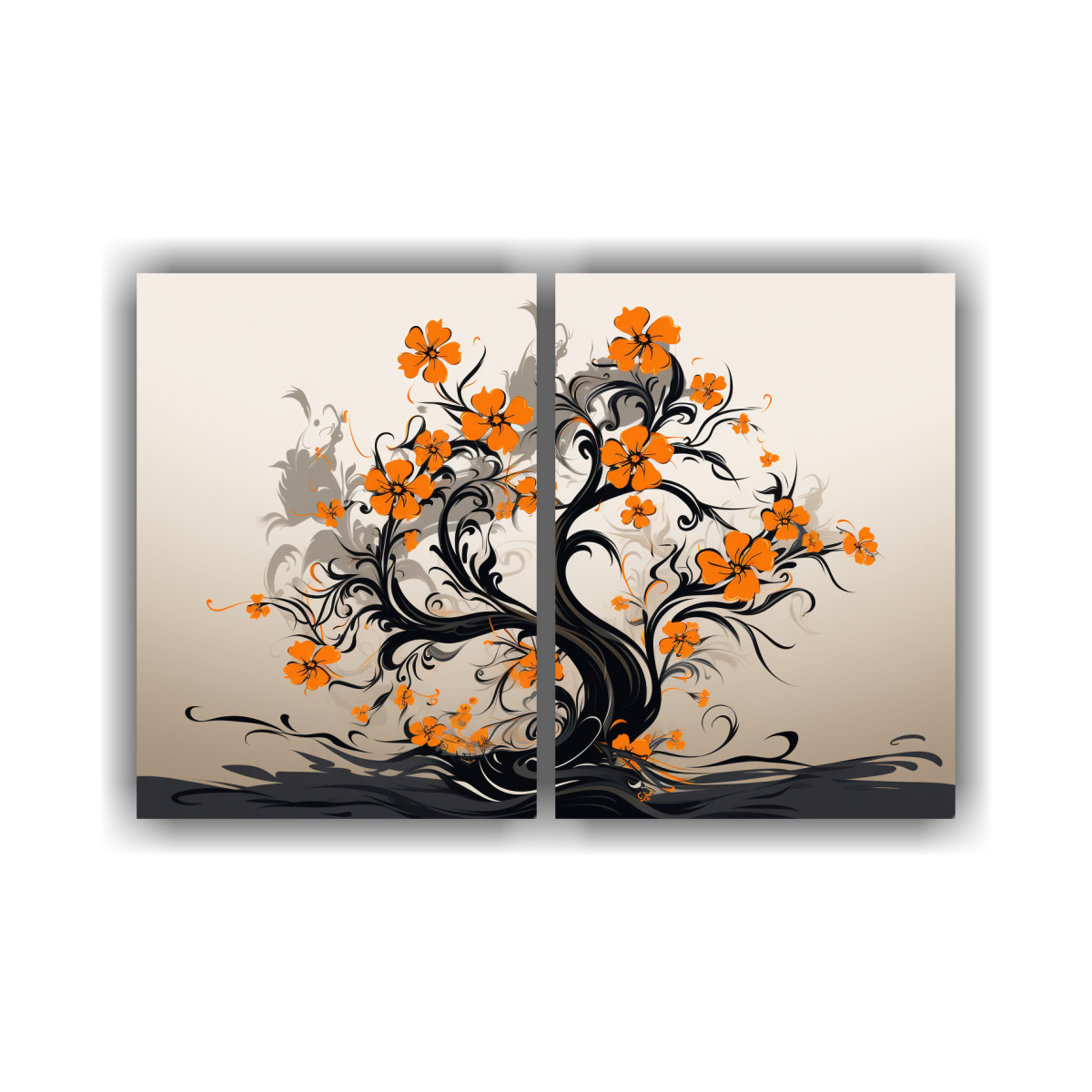 El Cuadro abstracto Naranjo en colores naranja y negro es perfecto para agregar un toque de modernidad y elegancia a tu hogar u oficina Con tonos como Azul Marino grisaceo, Beige, Gris, Anaranjado, Carmesí, Plateado y Lila, se adapta a diferentes estilos de decoración