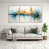 Este cuadro abstracto de una escena urbana en tonos azules y grises es perfecto para decorar tu sala de estar o estudio Colócalo sobre un sofá o un escritorio de madera para crear un contraste de texturas Combínalo con cojines y cortinas en tonos beige y gris para lograr una paleta de colores equilibrada Además, puedes añadir elementos decorativos en tonos verde azulado y coral para darle un toque de frescura y vitalidad a tu espacio