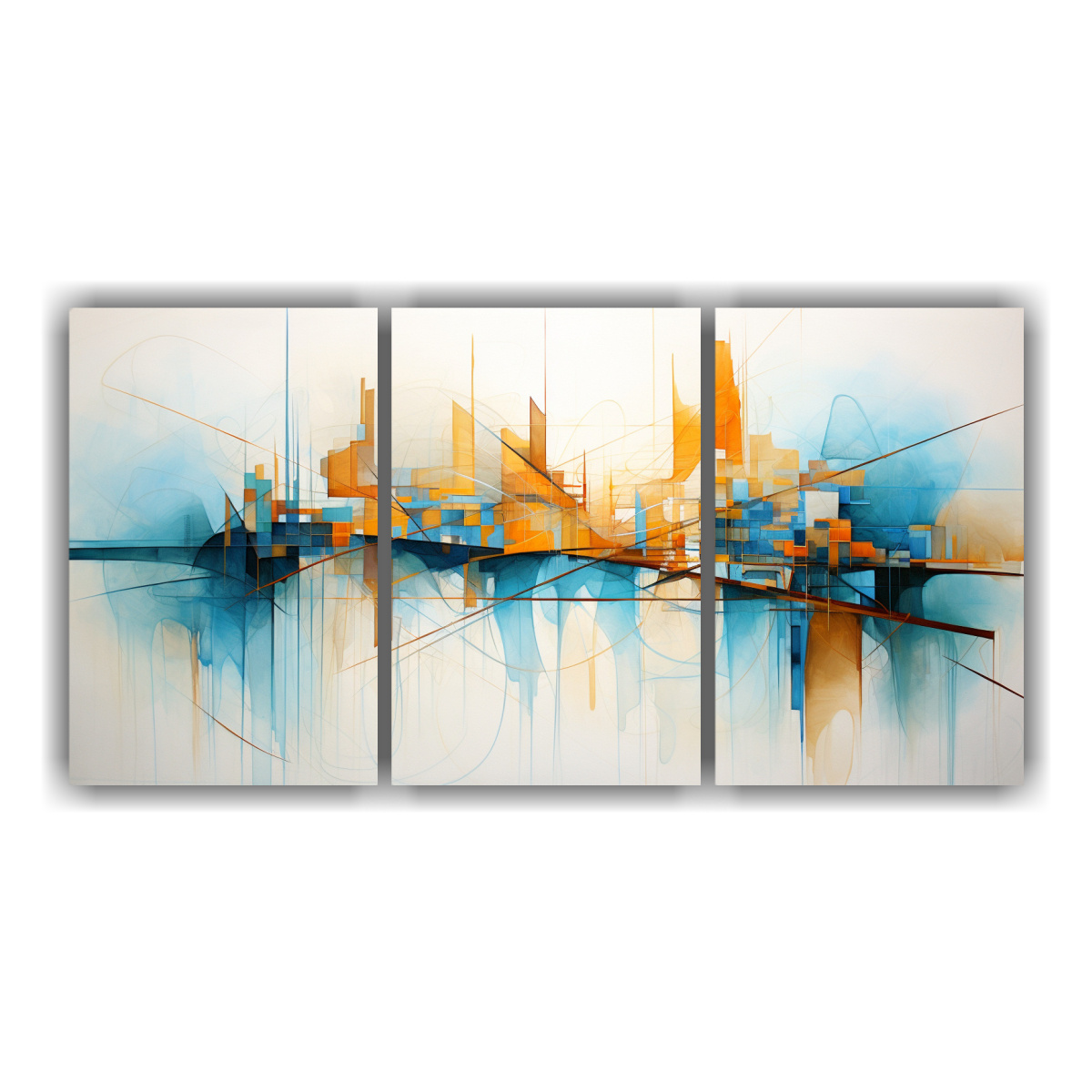 DecoCuadros te presenta este tríptico de una escena urbana en tonos azules y grises, ideal para darle un toque moderno y elegante a tus espacios Impreso en tela de alta calidad y con bastidores de madera, nuestros cuadros son duraderos y resistentes Combina tonos verde azulado, beige, coral, turquesa, chocolate, plateado y gris para crear una atmósfera sofisticada y contemporánea