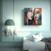 Este cuadro abstracto de vanguardia urbana con rostros de hombres y mujeres quedará perfecto en tu sala de estar Combínalo con muebles de colores neutros como gris y blanco para crear un ambiente moderno y sofisticado Además, añade cojines y cortinas en tonos plateados, azules y verdes para resaltar los colores del cuadro ¡Sorprende a tus invitados con esta pieza de arte única!