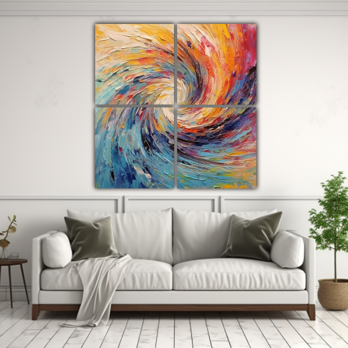 Este cuadro abstracto decorativo con remolinos coloridos es perfecto para agregar un toque de color a tu sala de estar Colócalo sobre un sofá de color neutro para crear un contraste vibrante Complementa el cuadro con cojines en tonos de coral, carmesí y menta Agrega una alfombra gris para equilibrar los colores y crear una sensación de calma ¡Con este cuadro, tu sala de estar se convertirá en el centro de atención de tu hogar!