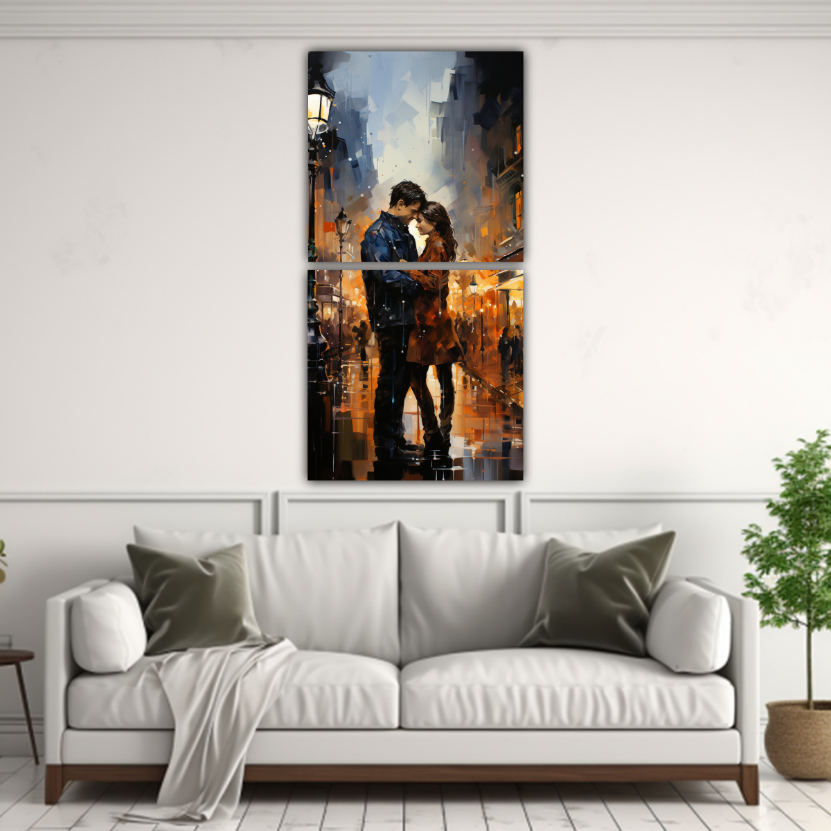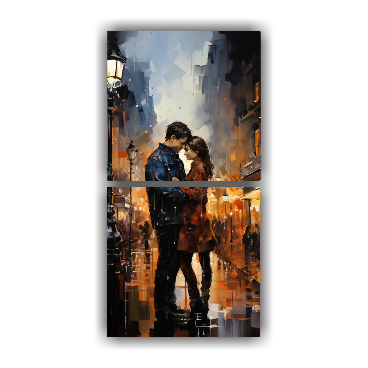 El cuadro abstracto Pareja Besándose en las Calles de París por la Noche con Cielo Estrellado es un adorno perfecto para darle un toque romántico y moderno a tus espacios Fabricado con tela de alta calidad y bastidores de madera Disponible en varios colores