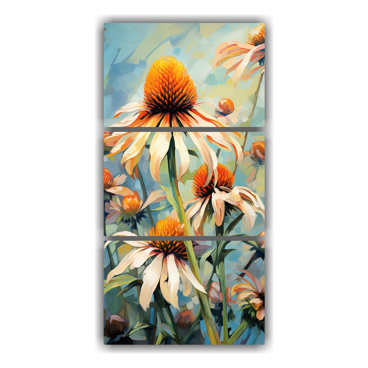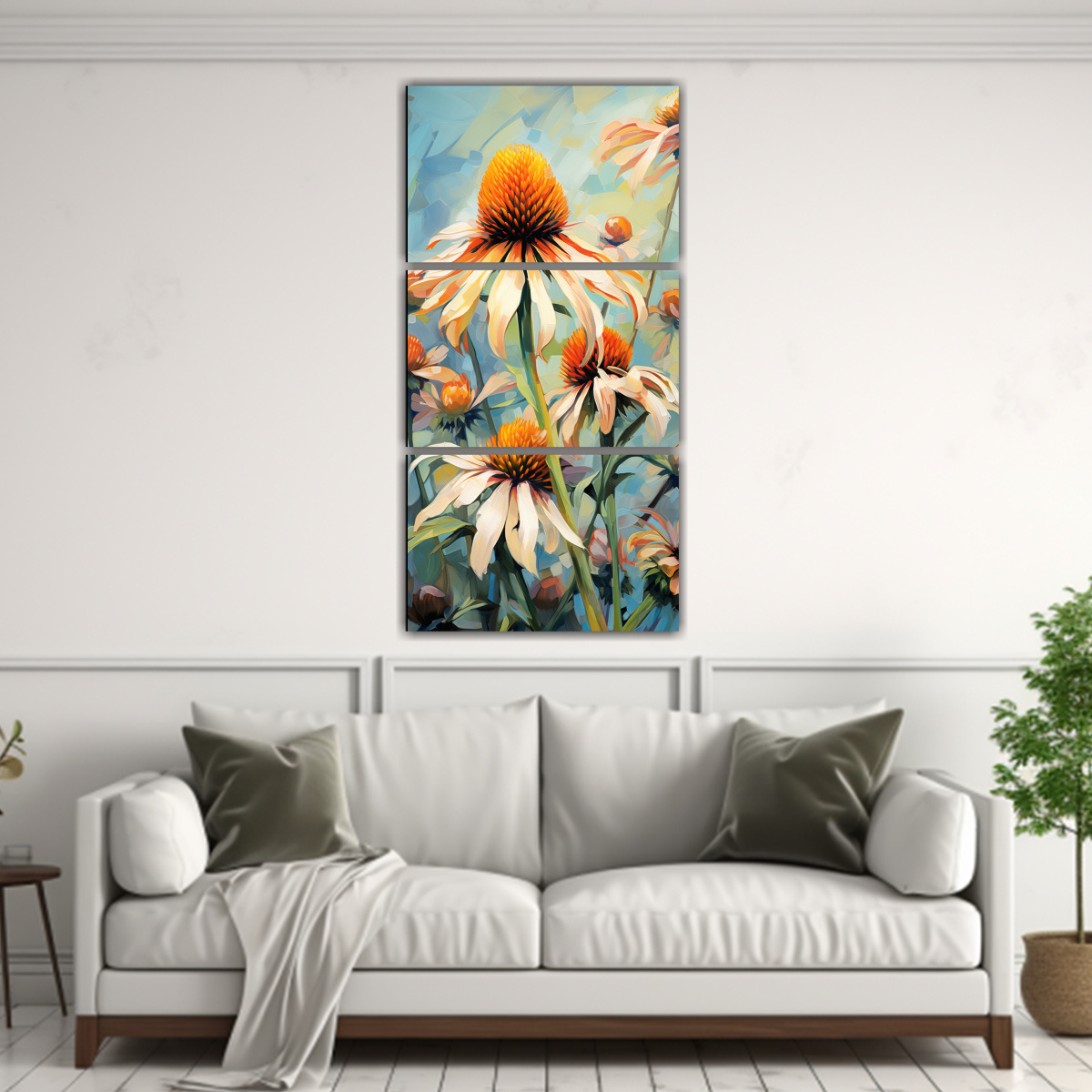Cuadro Abstracto Detallado De Hierbas De Coneflower En Tela: Set De 3 Lienzos Decorativos.