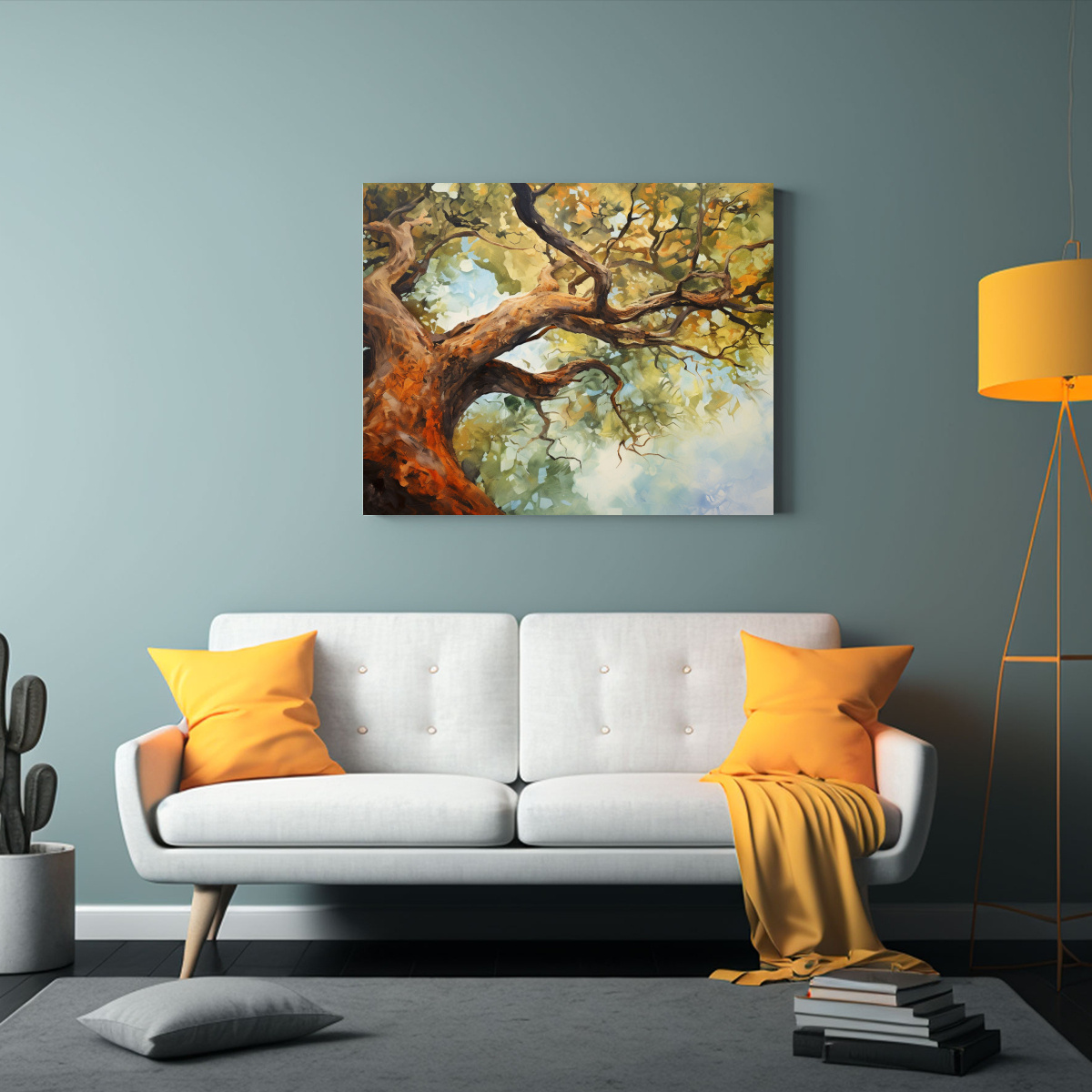 Cuadro Abstracto Detallado De Roble En óleo Para Decoración.