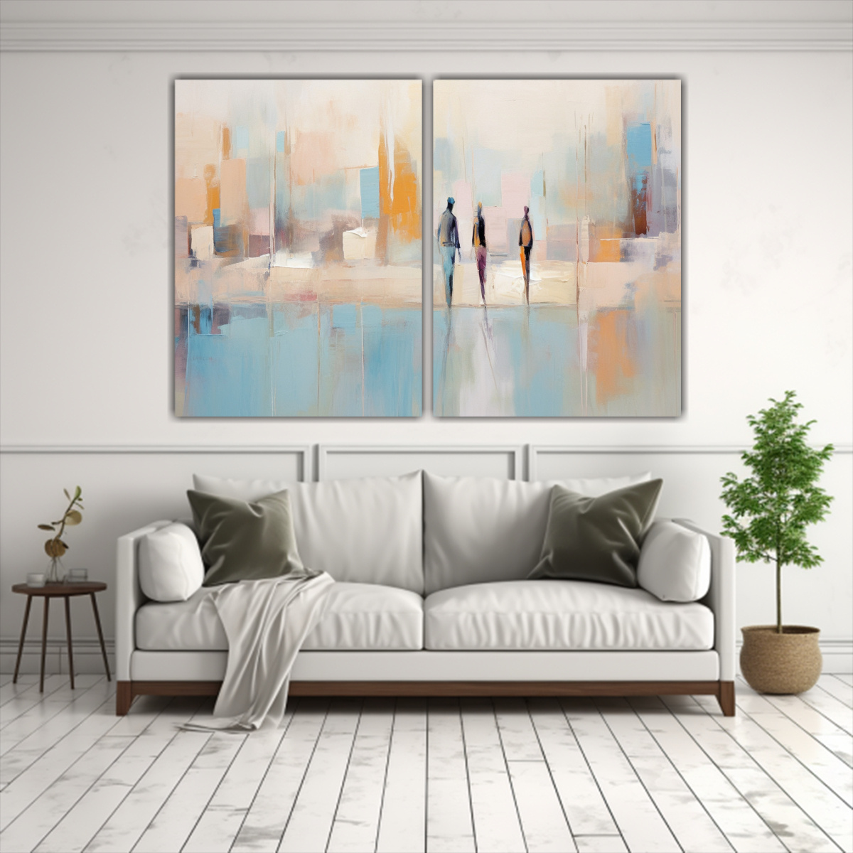 Cuadro Abstracto Dinámico En óleo De Personas En Paisaje.