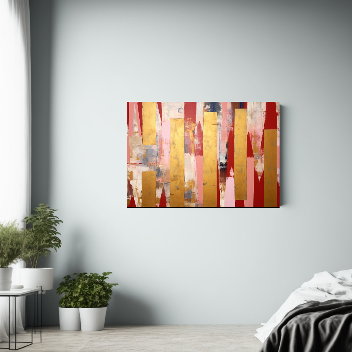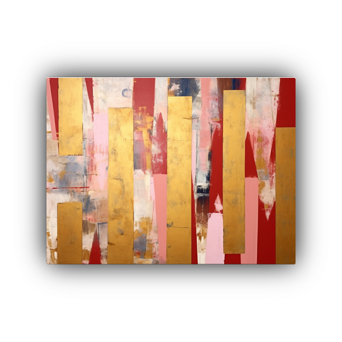 Este Cuadro abstracto dorado y rojo quedará perfecto en tu sala de estar, creando un punto focal llamativo Combínalo con muebles en tonos neutros y accesorios en dorado o beige para una decoración moderna y elegante ¡Atrévete a darle un toque de arte y estilo a tu espacio!