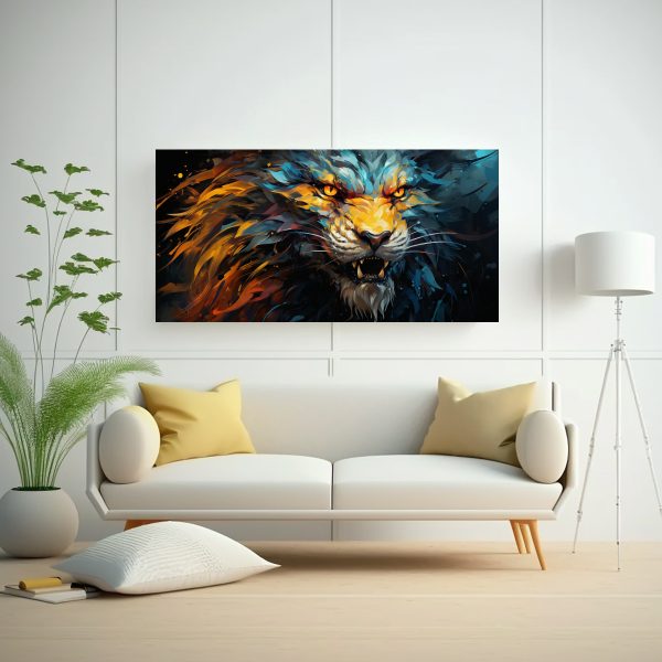 Este cuadro abstracto con colores vibrantes y el dragón en amarillo y azul destacará de manera elegante en tu sala de estar Combínalo con muebles en tonos neutros para crear un contraste moderno y sofisticado en tu espacio