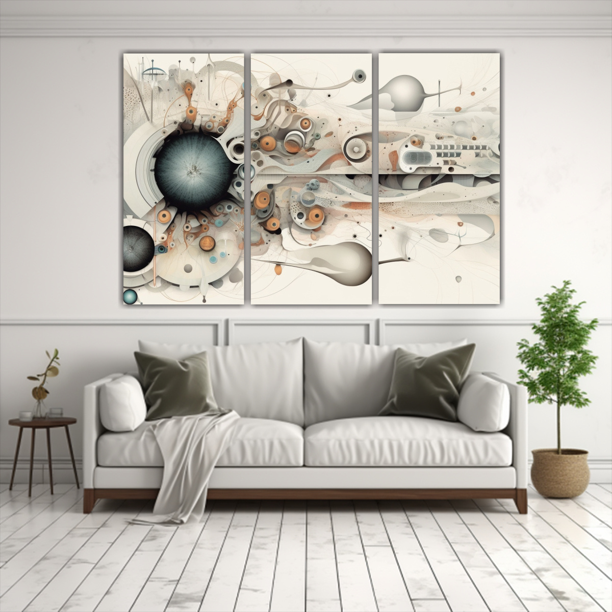 Cuadro Abstracto En Bastidor Para Salón: Célula Alienígena En Tonos Neutros.