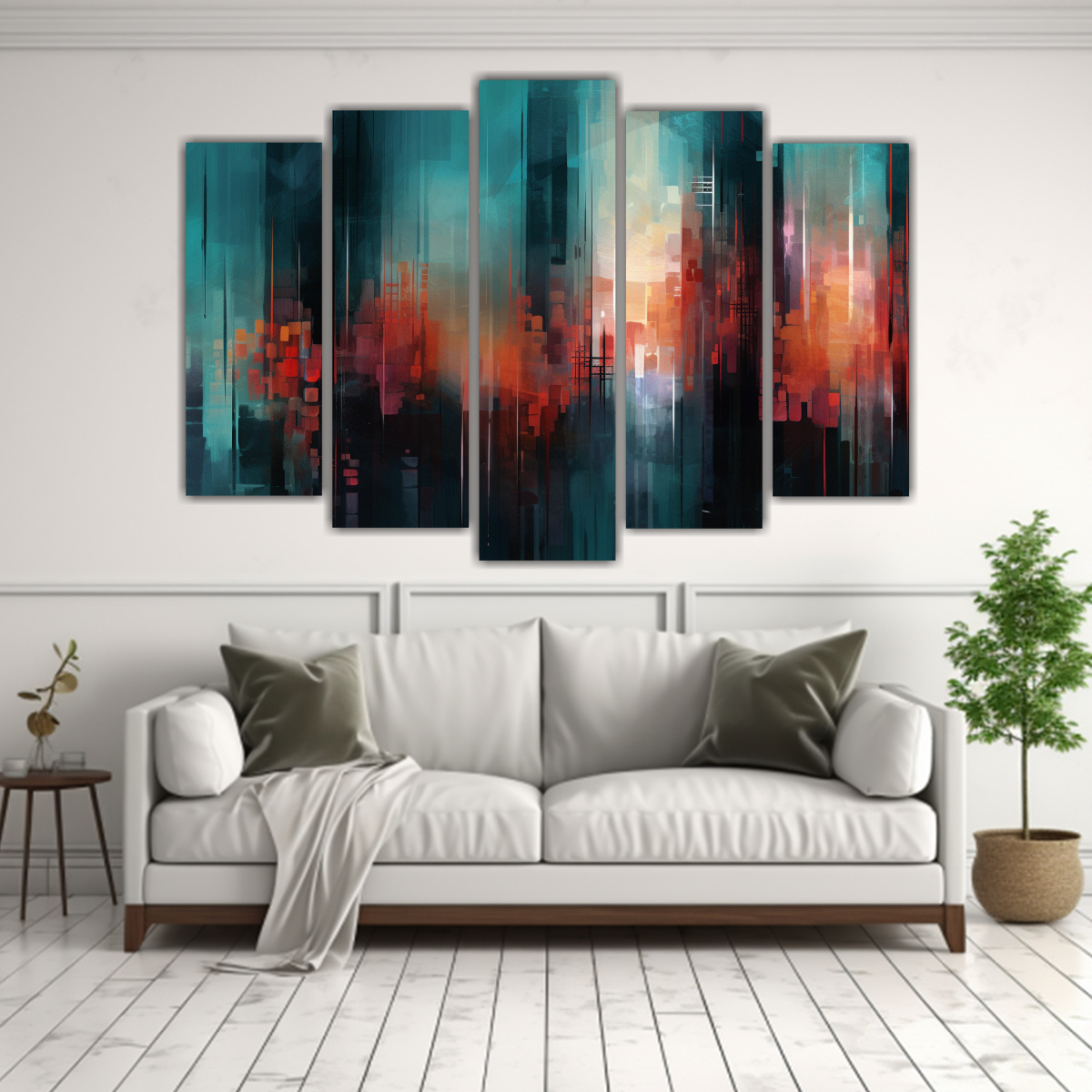 Este Set de 5 Telas en Bastidor se verá espectacular en tu sala de estar Combínalo con muebles de tonos neutros para resaltar la expresividad de los colores Colócalo sobre un sofá o mueble principal para darle vida y dinamismo a tu espacio