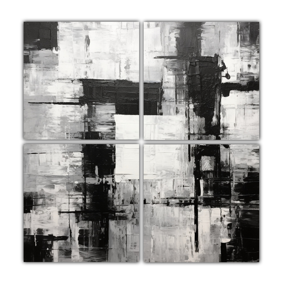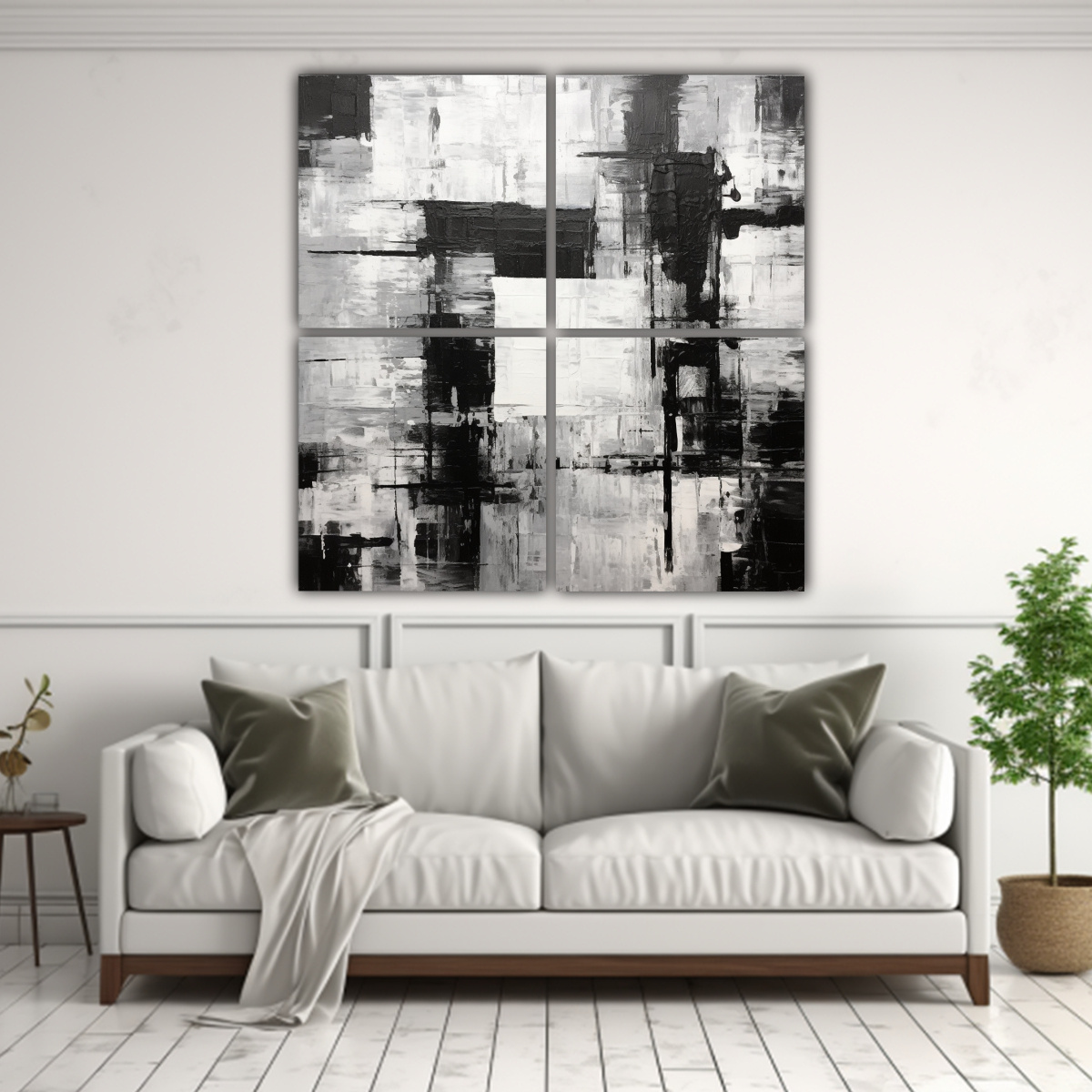 Cuadro Abstracto En Blanco Y Negro Con Colores Vibrantes