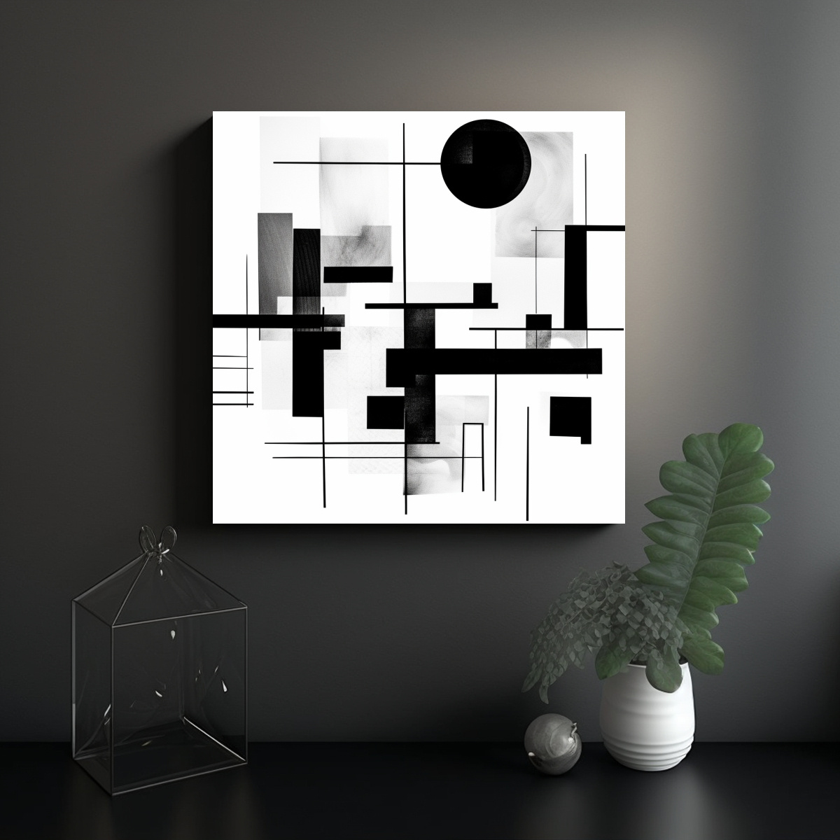 Este Cuadro Abstracto en Blanco y Negro es ideal para decorar una sala de estar moderna Colócalo sobre un sofá de color neutro para resaltar sus tonos intensos y líneas minimalistas Combínalo con cojines en tonos plateados y grises para lograr un ambiente sofisticado y elegante