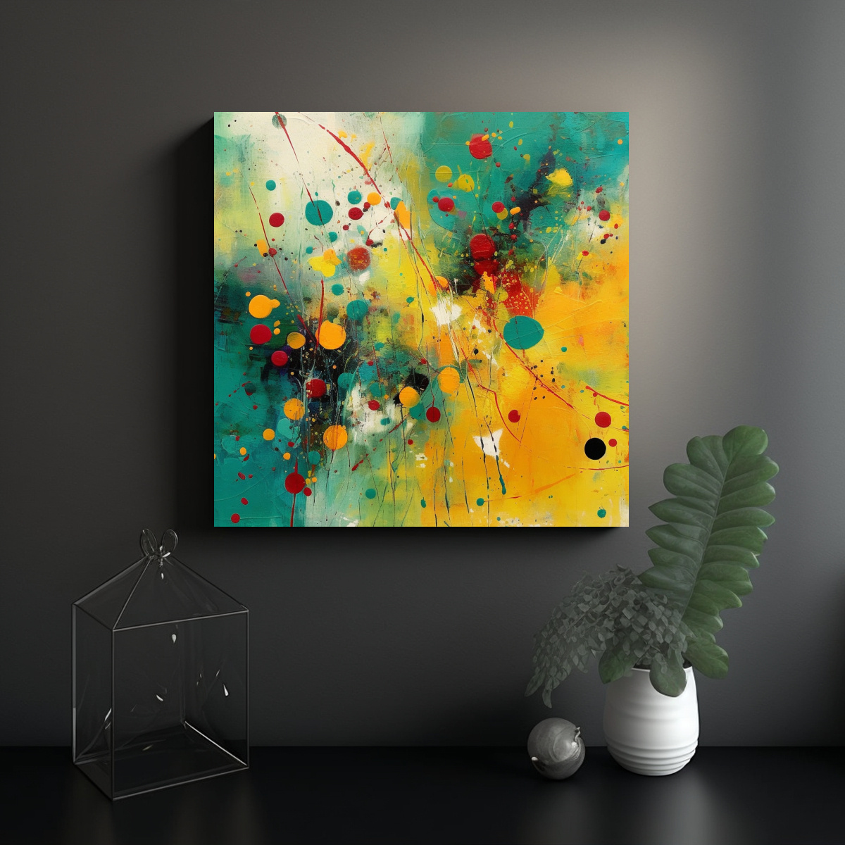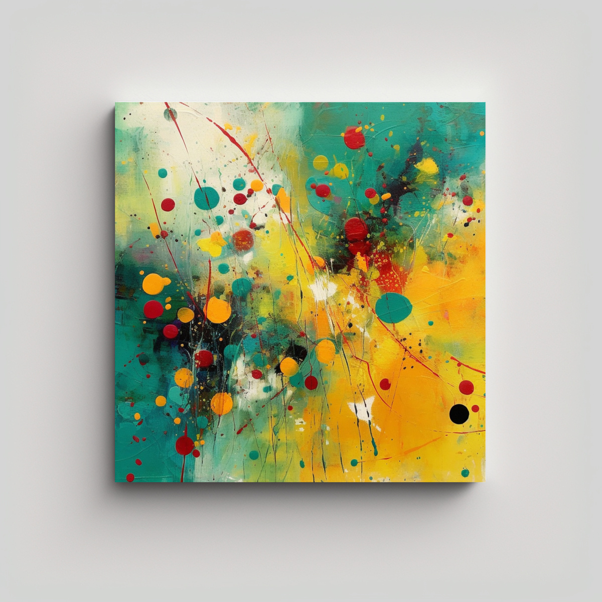 Renueva tu hogar con este Cuadro Dibujo Culturar abstract teal color mixed with yellow mustard and spots Diseño exclusivo de DecoCuadros impreso en tela de alta calidad Añade un toque de elegancia y modernidad a tu espacio ¡No te lo pierdas!