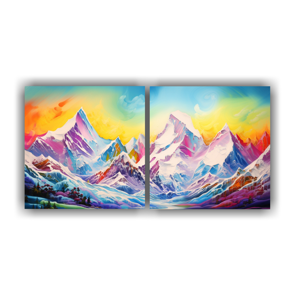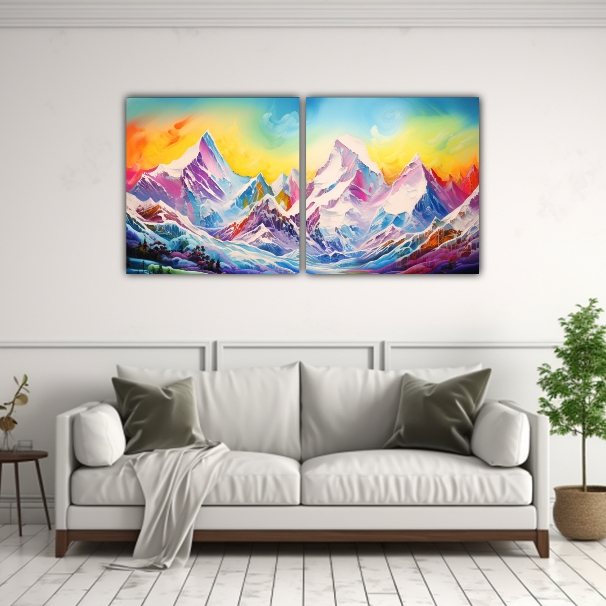 Cuadro Abstracto En Colores Del Arcoíris En Un Moderno Espacio Montañoso.