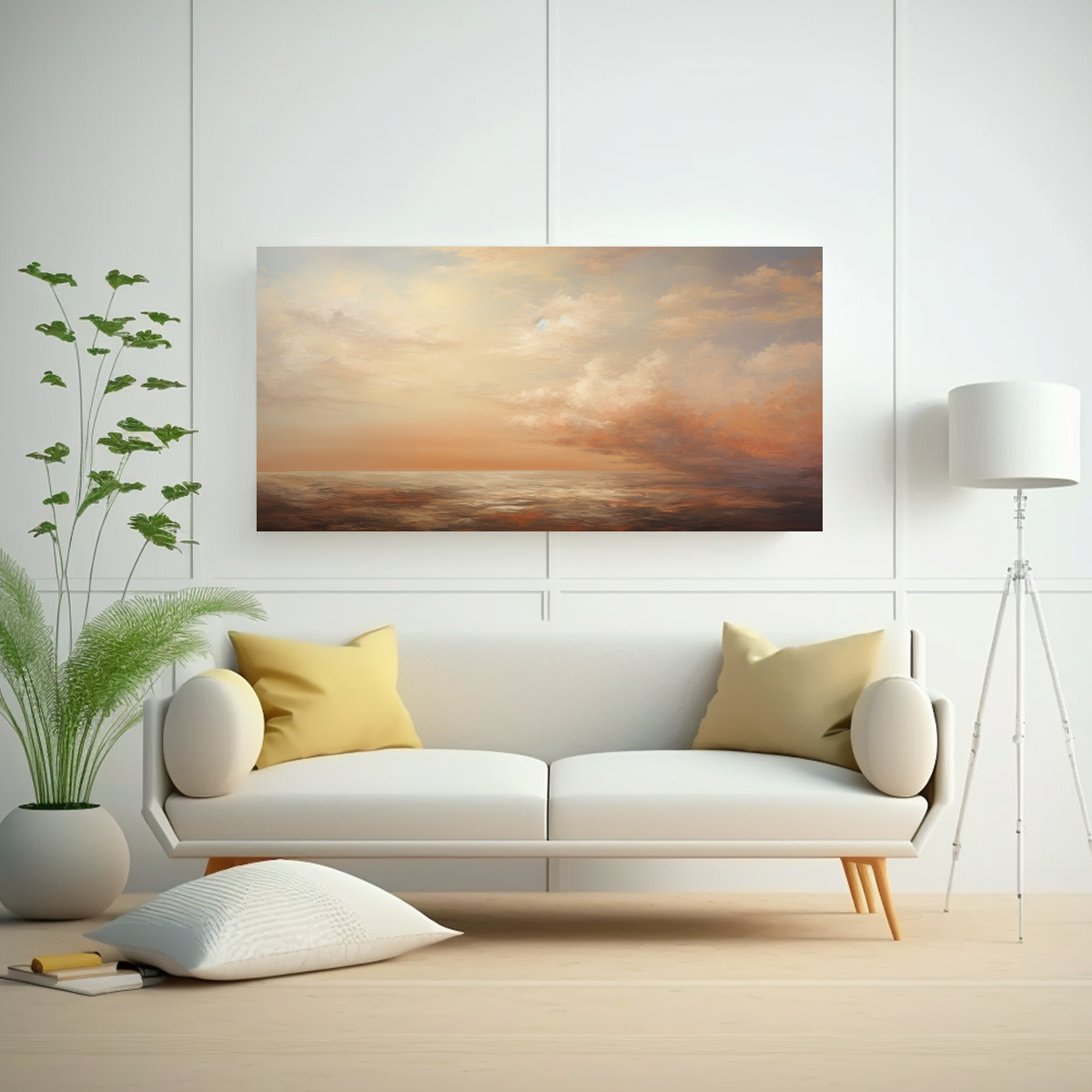 Cuadro Abstracto En Lienzo Con Forma De Cielo Y Mar En Tonos Marrones