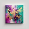 Cuadro Abstracto En Lienzo Con Pinturas Acrílicas Moradas, Rosas Y Verdes