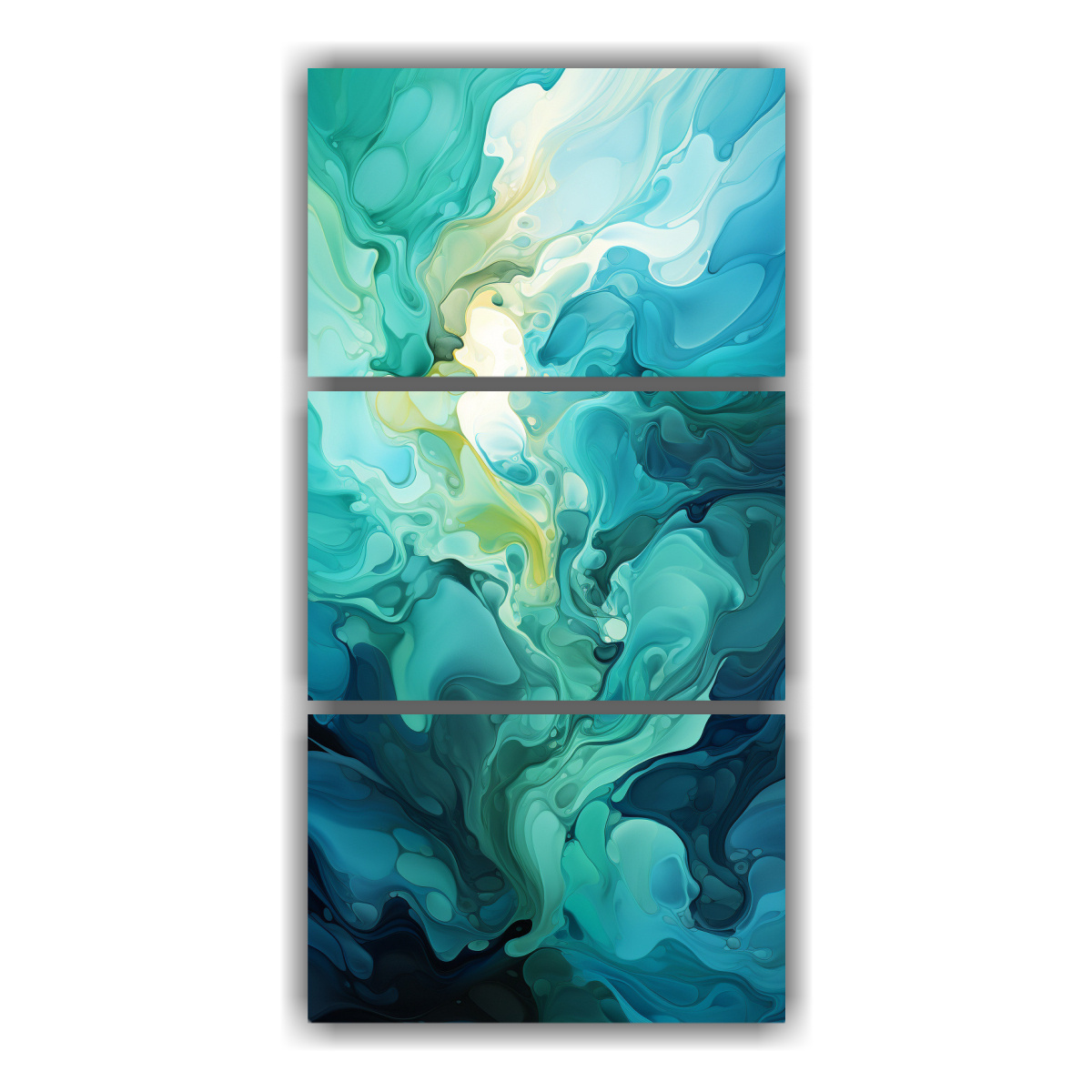 Este conjunto de cuadros en tonos verdes y azules es ideal para decorar salas de estar o dormitorios, creando un ambiente fresco y moderno Colócalos juntos en una pared principal para un impacto visual máximo