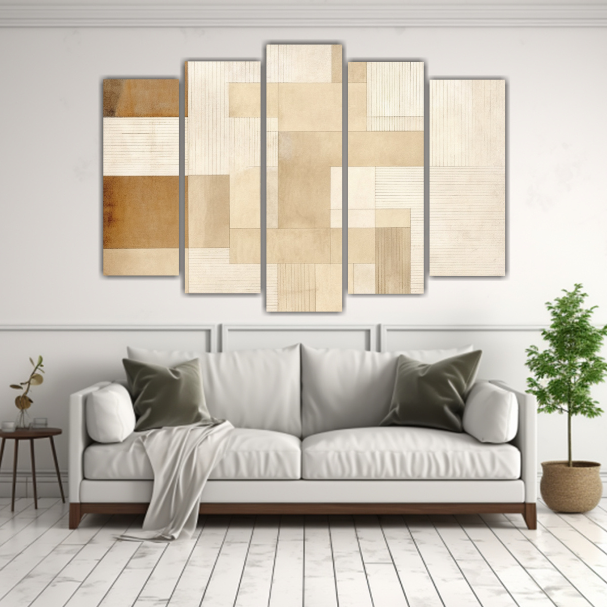 Cuadro Abstracto En Relieve Beige Estilo Lineal Para Decoración.