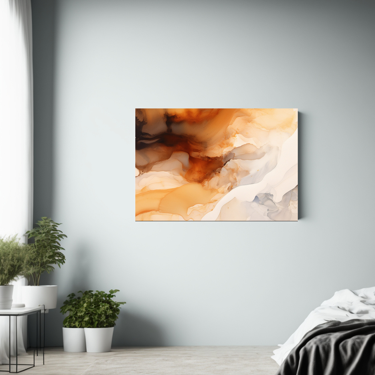 Para realzar la elegancia de tu sala de estar, coloca este Cuadro abstracto en tela: Detalle de pintura marrón y blanca sobre una pared de tonos neutros como blanco o gris claro Combinará a la perfección con muebles de estilo moderno o minimalista