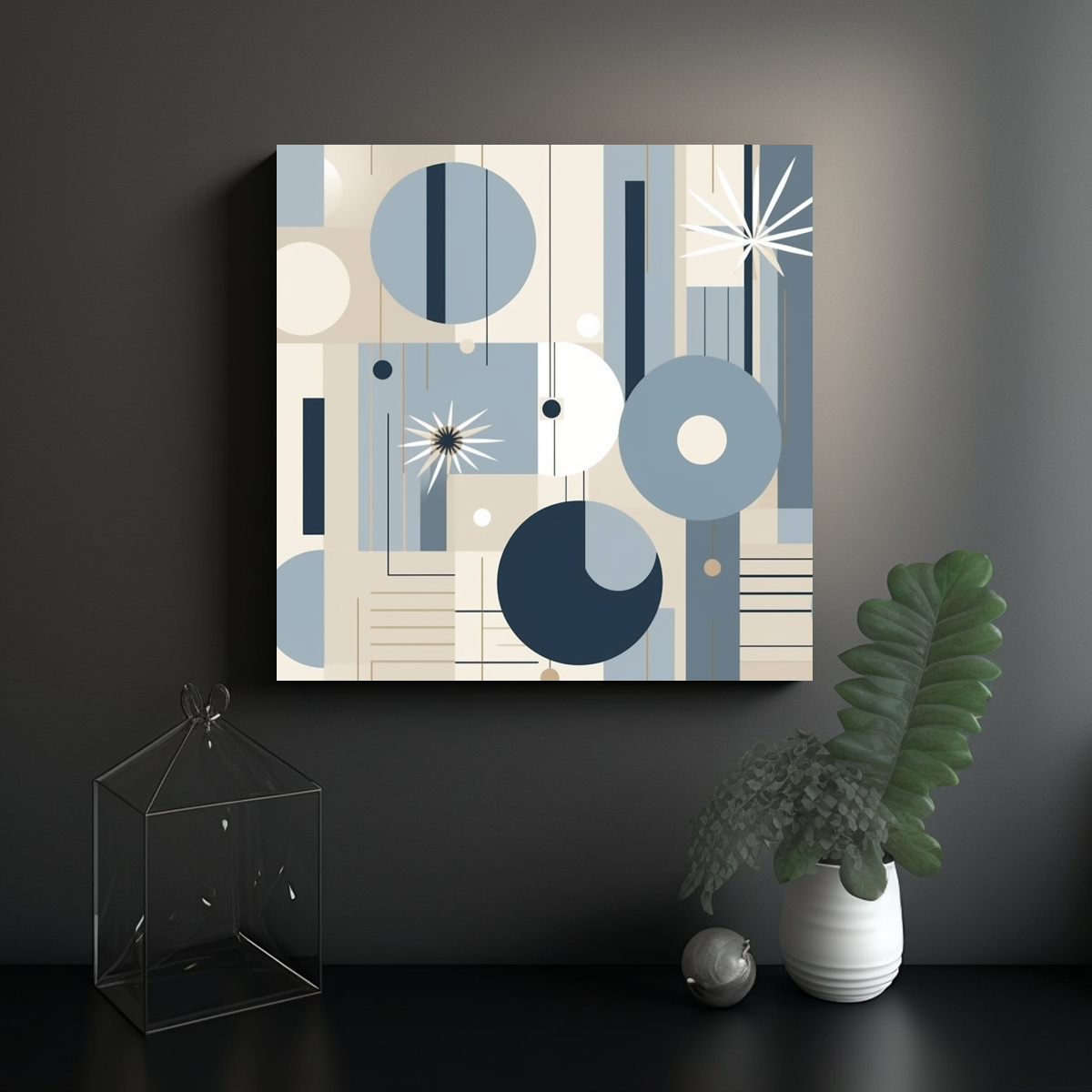 Para realzar la belleza de este cuadro abstracto en tonos azules y grises, te recomendamos colocarlo en un espacio amplio y bien iluminado, como la sala de estar o el comedor Combínalo con muebles en tonos neutros para crear un ambiente elegante y sofisticado ¡Dale un toque de arte a tu hogar con este diseño exclusivo de DecoCuadros!