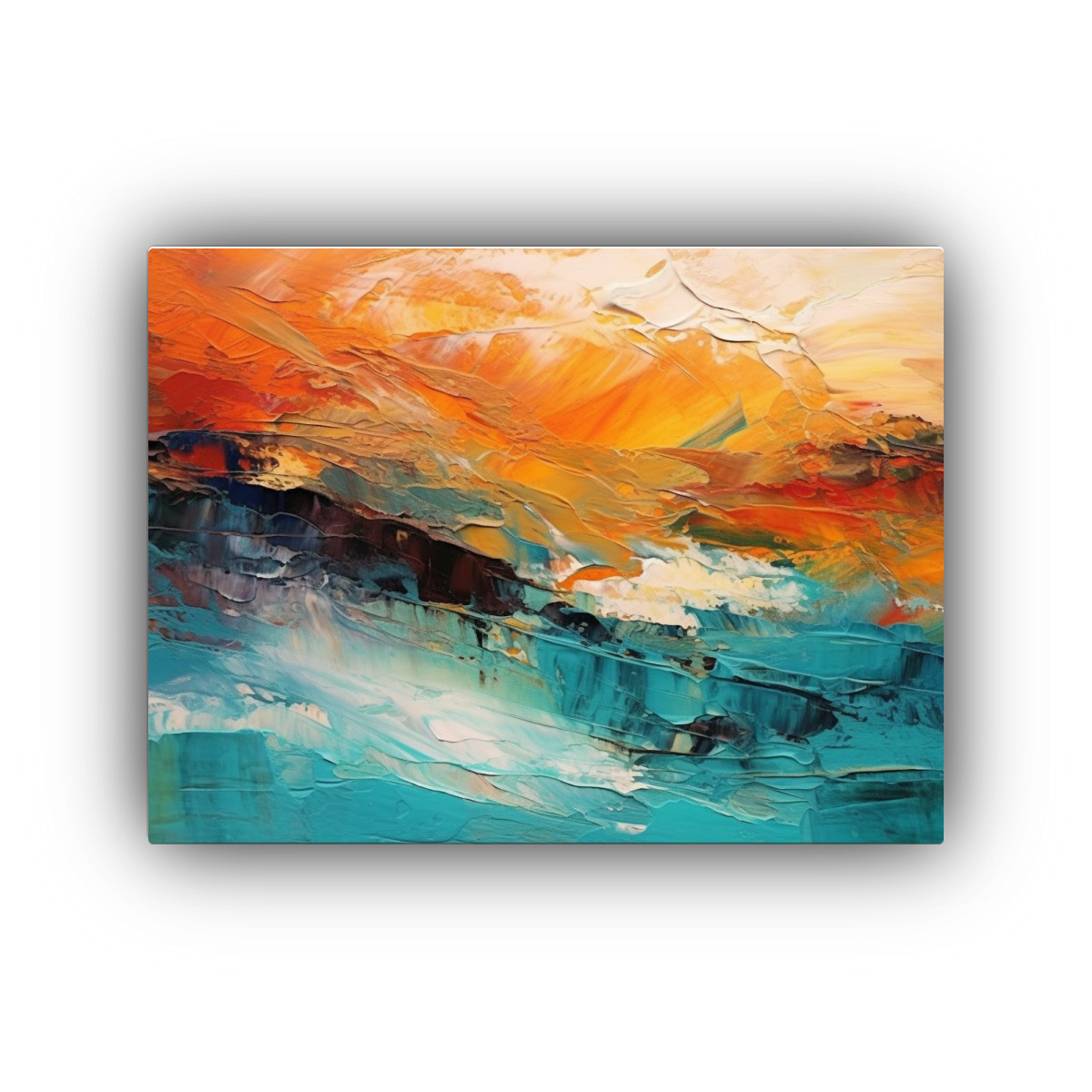 Este cuadro luciría espectacular en una sala de estar contemporánea Colócalo sobre un sofá gris para resaltar los tonos rojos y naranjas Complementa la decoración con cojines en tonos turquesa y amarillo claro para lograr un ambiente armonioso y lleno de energía
