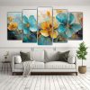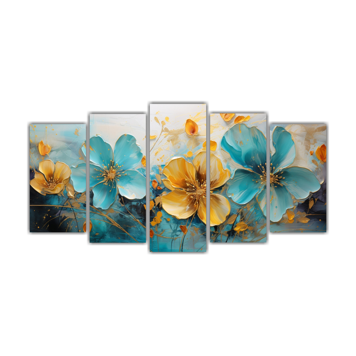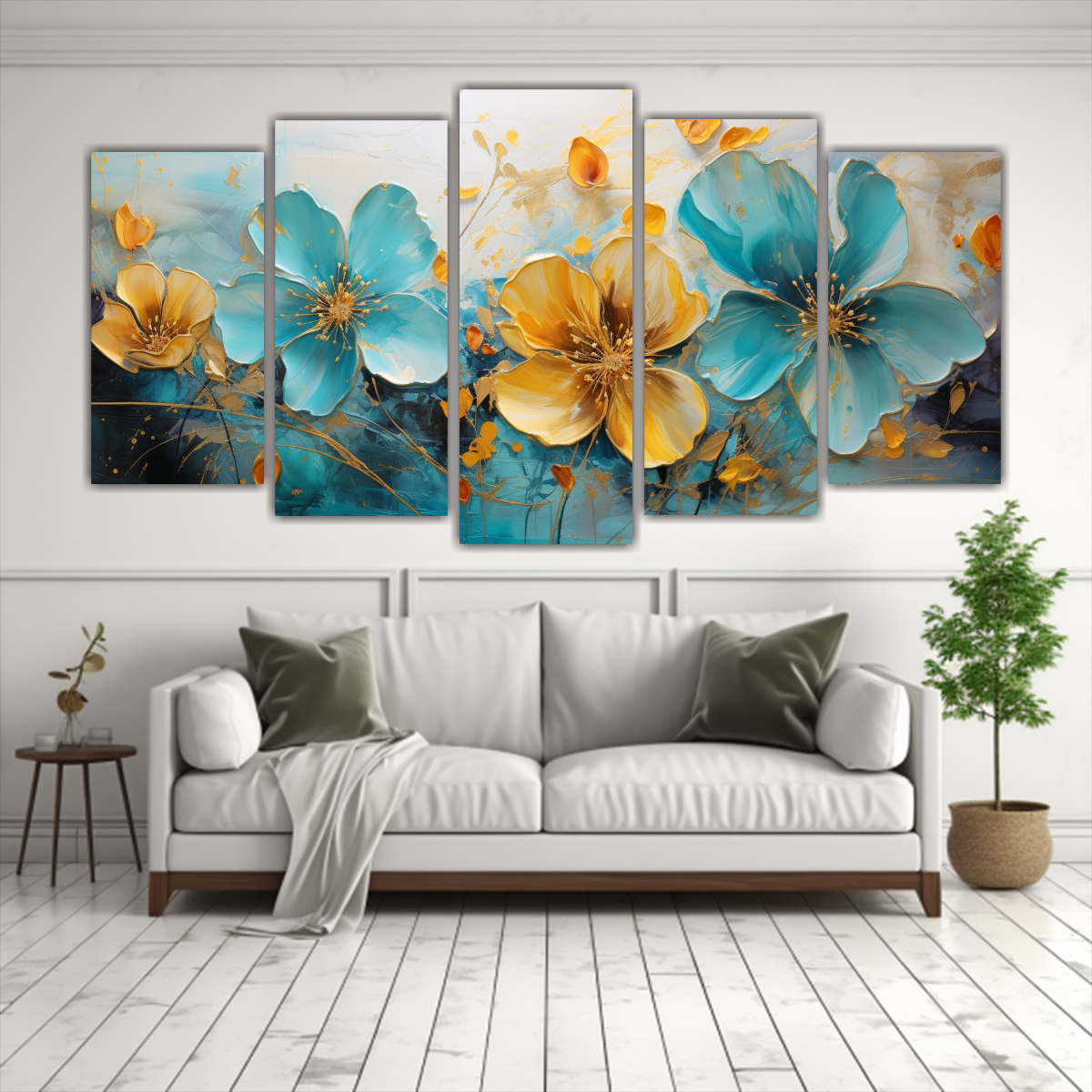 Cuadro Abstracto En Tonos Turquesa Y Dorado De Cinco Artes Patron