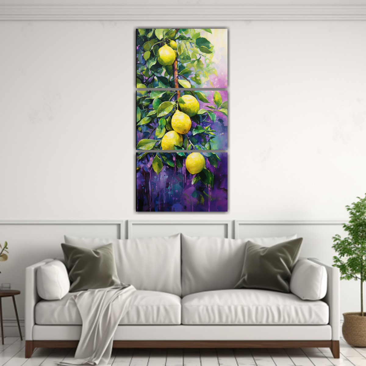 Cuadro Abstracto En Tonos Verde Limón Y Púrpura Para Decoración De Comedor.