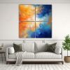 Los colores azul marino grisaceo, coral, plateado, gris, amarillo claro, turquesa y carmesí se combinan en el cuadro abstracto época 3318457576 de DecoCuadros Nuestros cuadros están impresos en tela de alta calidad y cuentan con bastidores de madera para mayor durabilidad