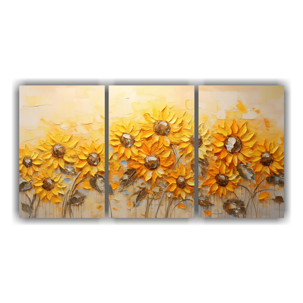 Dale un toque único a tu hogar con el set de 3 lienzos abstractos estética girasoles amarillos ¡Envío gratis en Santiago y envíos express a regiones!