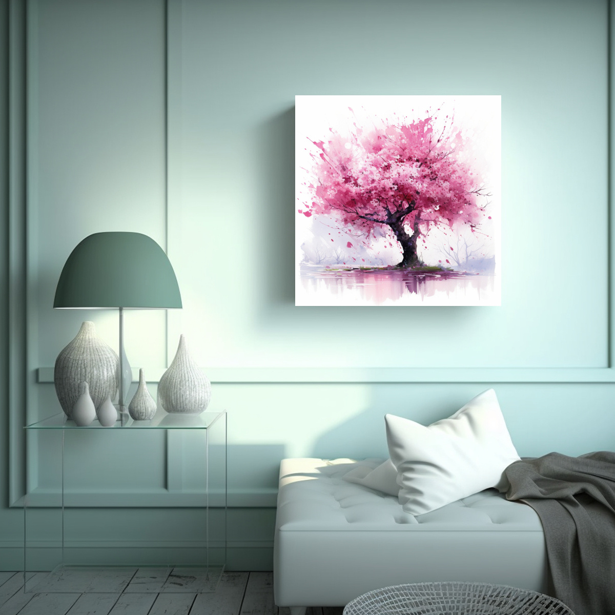 Decora tu espacio con el cuadro abstracto estilo A cerezo en colores rosa Arte expresión en pintura acuarela de alta calidad con bastidores de madera ¡Compra ahora!