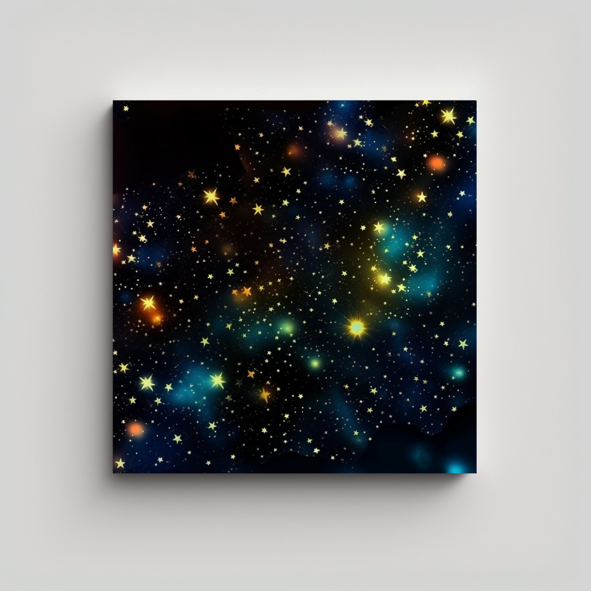 Cuadro Abstracto Estilo Animé Con Tonos Estrellados Sobre Fondo Negro Decorativo.