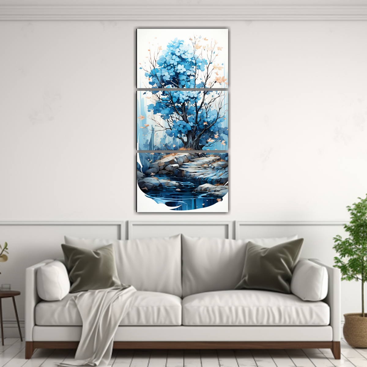 Cuadro Abstracto Estilo Galería: Árbol Bonsái De Abedul En Negro Y Azul.