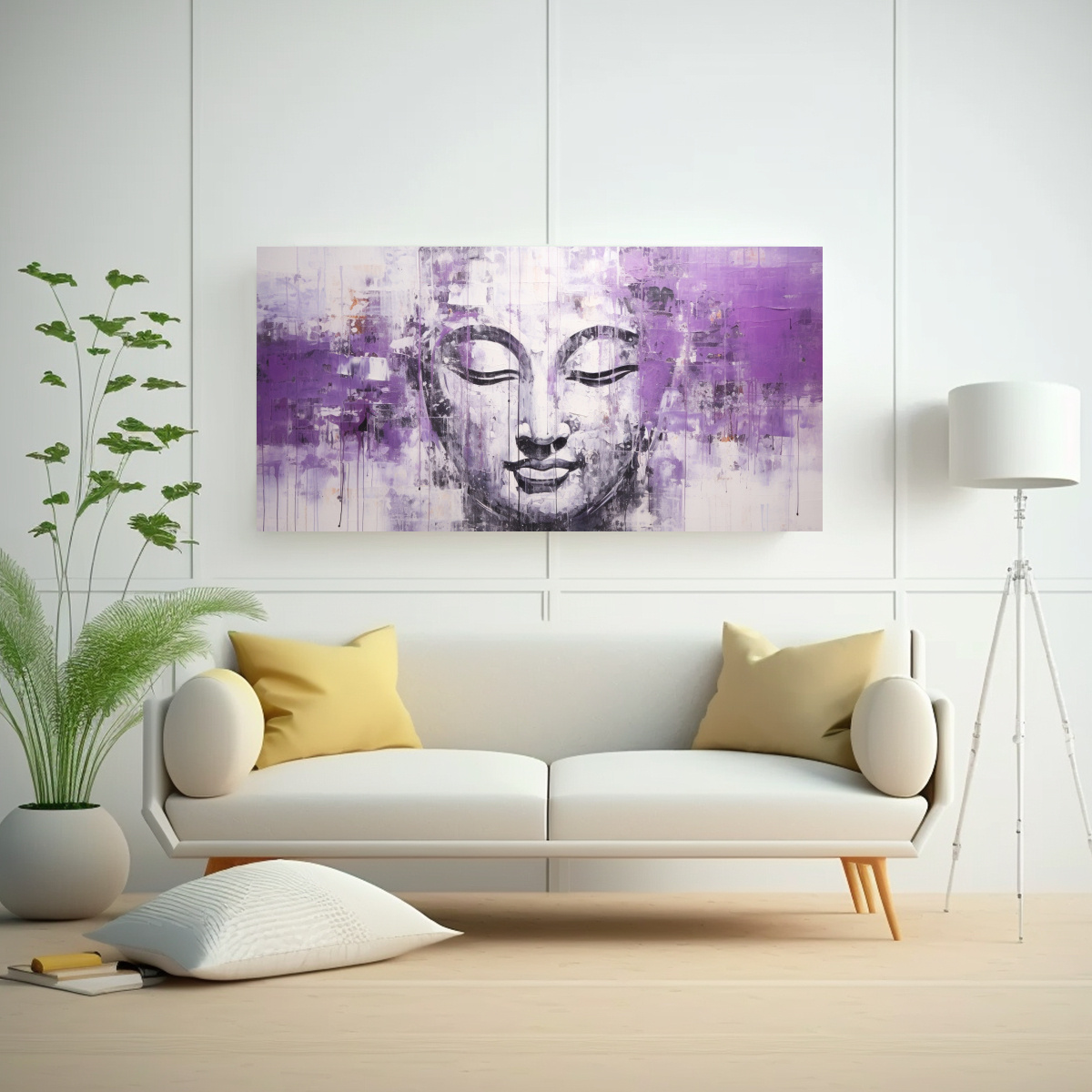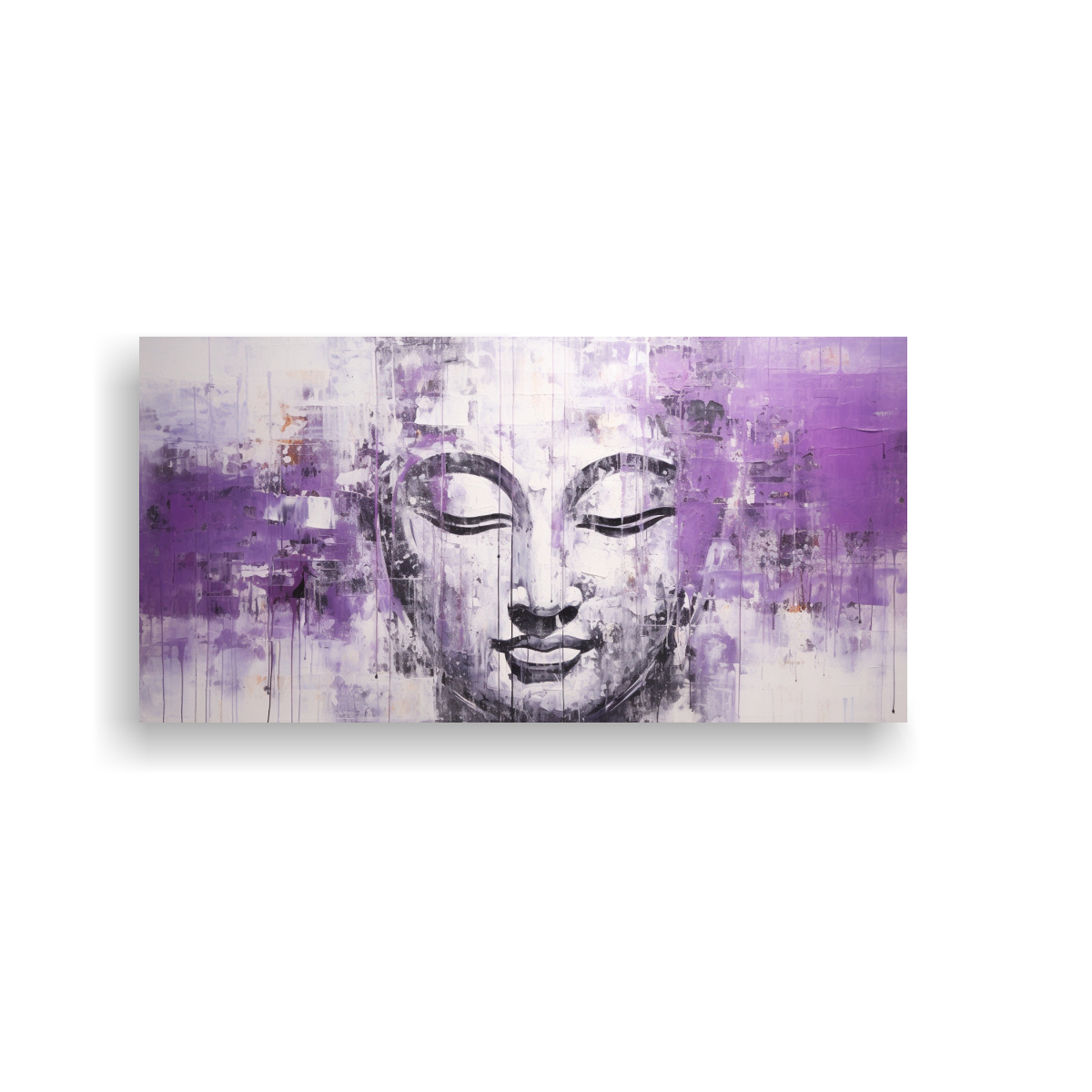 Cuadro Abstracto Estilo Vida Buddha Cara óleo En Lienzo Moderno, Plata Y Púrpura.
