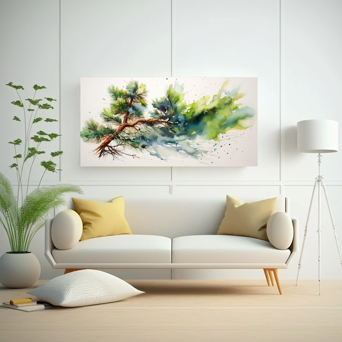 Cuadro Abstracto Exclusivo De Pintura Acuarela De Colores De Pinos En Lienzo Fotográfico