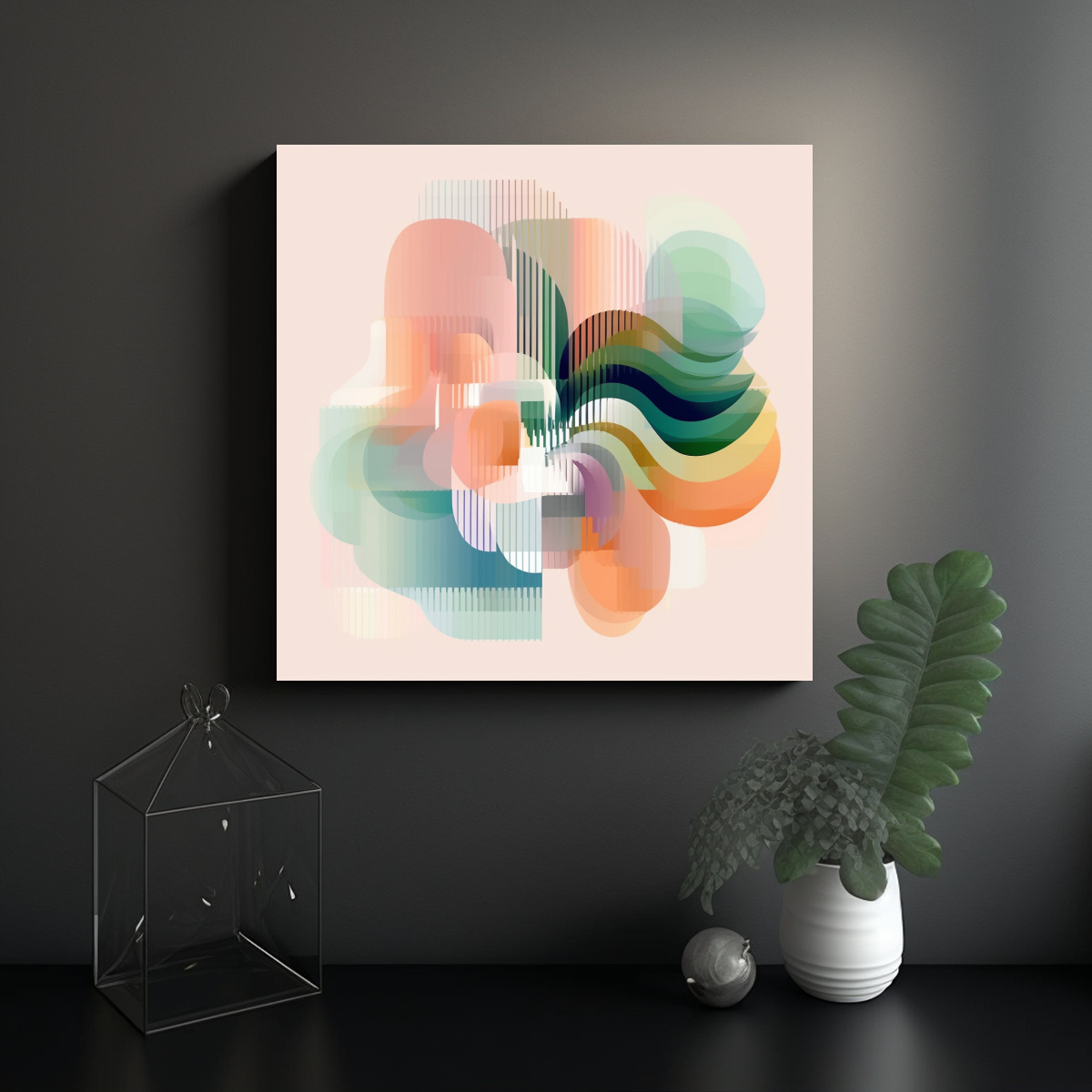 Este cuadro abstracto con tonos beige, azul marino grisaceo, lila y coral es perfecto para decorar una sala de estar de estilo moderno Colócalo sobre un sofá gris para resaltar los colores y crear un ambiente elegante y acogedor ¡Dale vida a tu hogar con estilo!